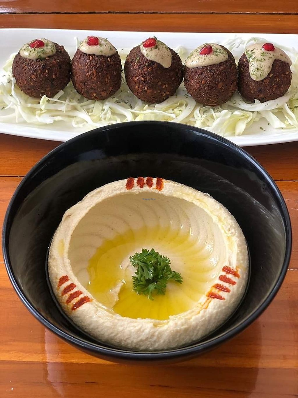 Serves meat, vegan options available. Mediterranean restaurant with a varied menu including marked vegan dishes. Examples include Thai curries, spaghetti dishes, a few varieties of hummus, falafel, soup and more. Located on a cliff at the end of Kamala bay with a view over the whole bay and the mountains behind. Reported closed July 2021.