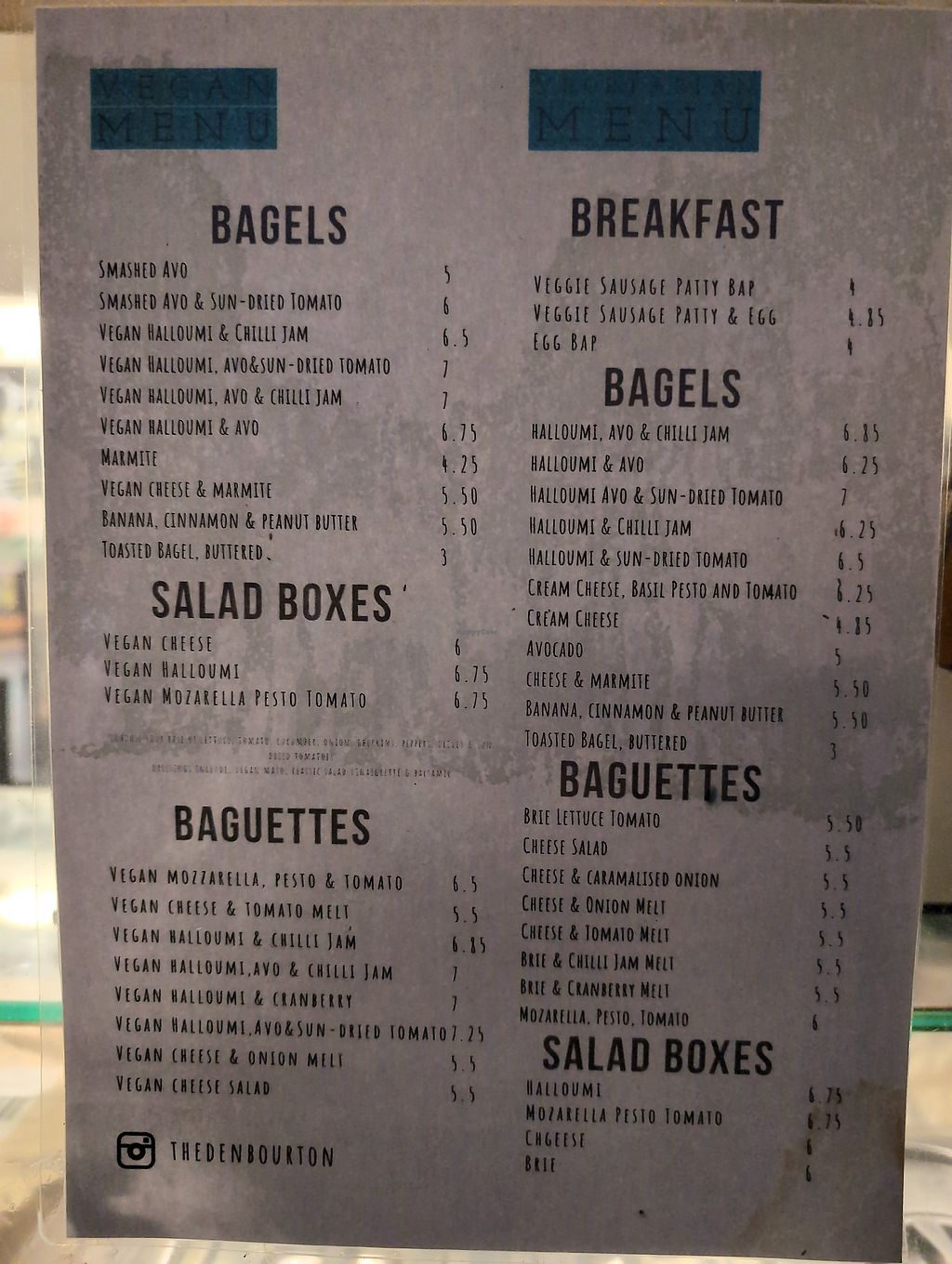 Separate vegan menu board full of bagels, baguettes and lots of treats including cakes and milkshakes all clearly marked. Very vegan friendly plus had 4 vegan options of icescream too.