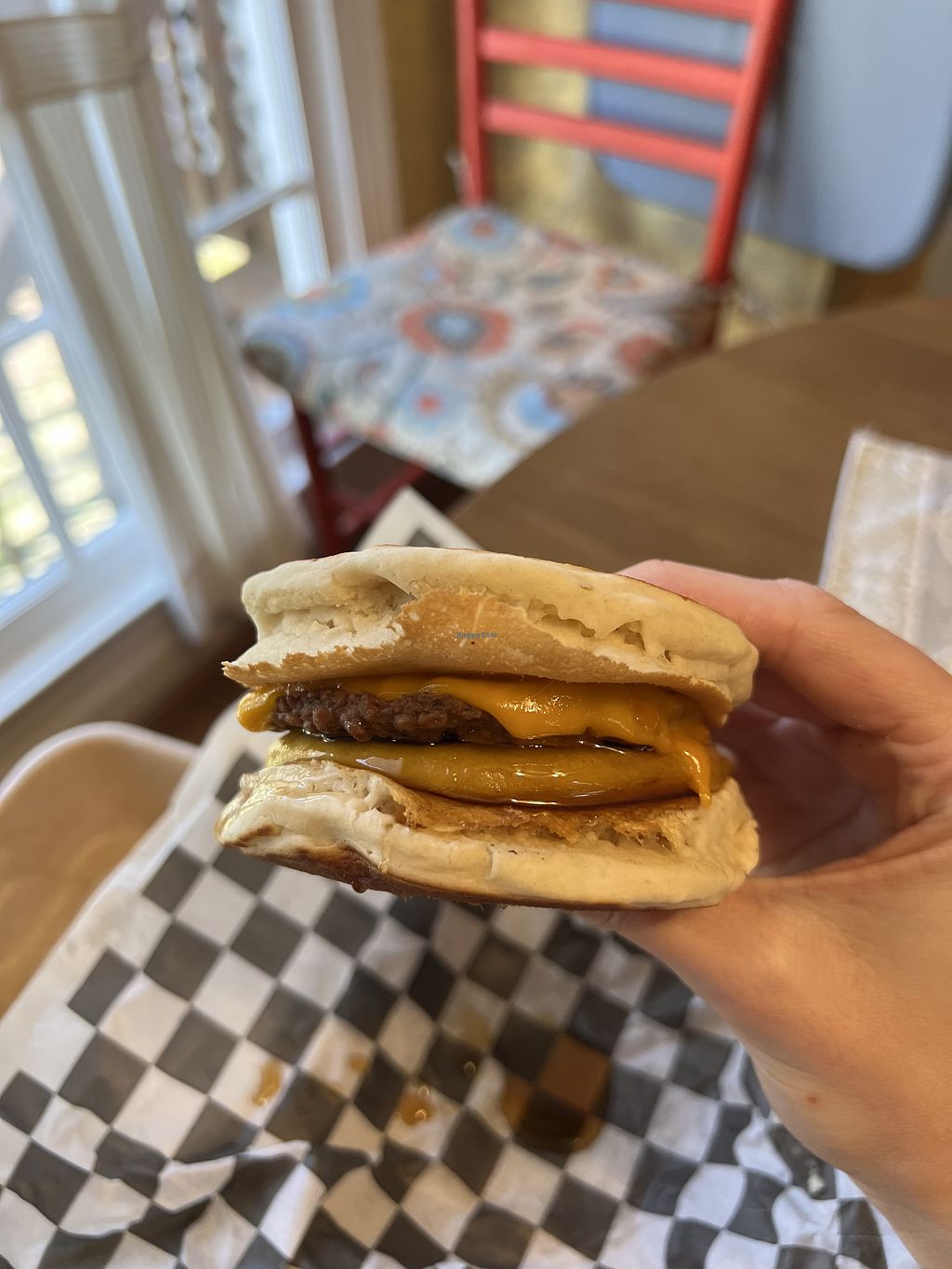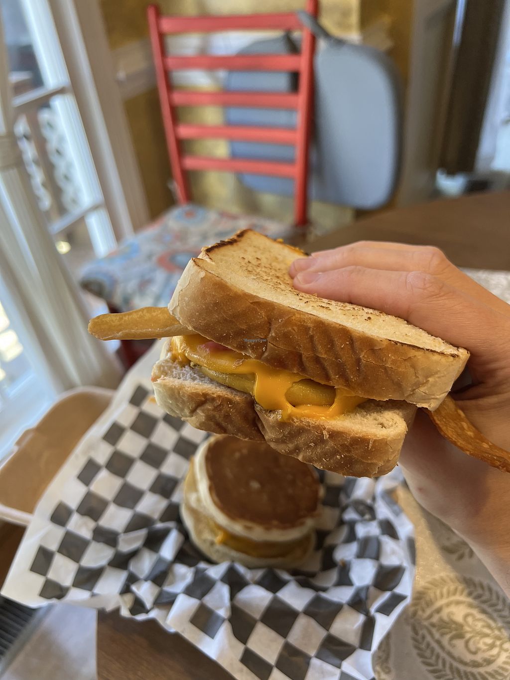 Dirty Griddle (Impossible Sausage, Vegan Egg, Chz, Pancake Buns)