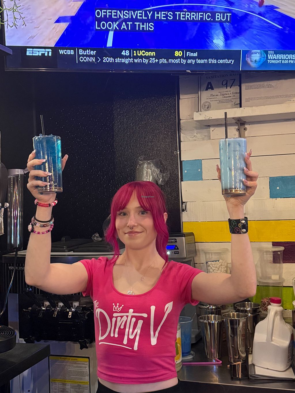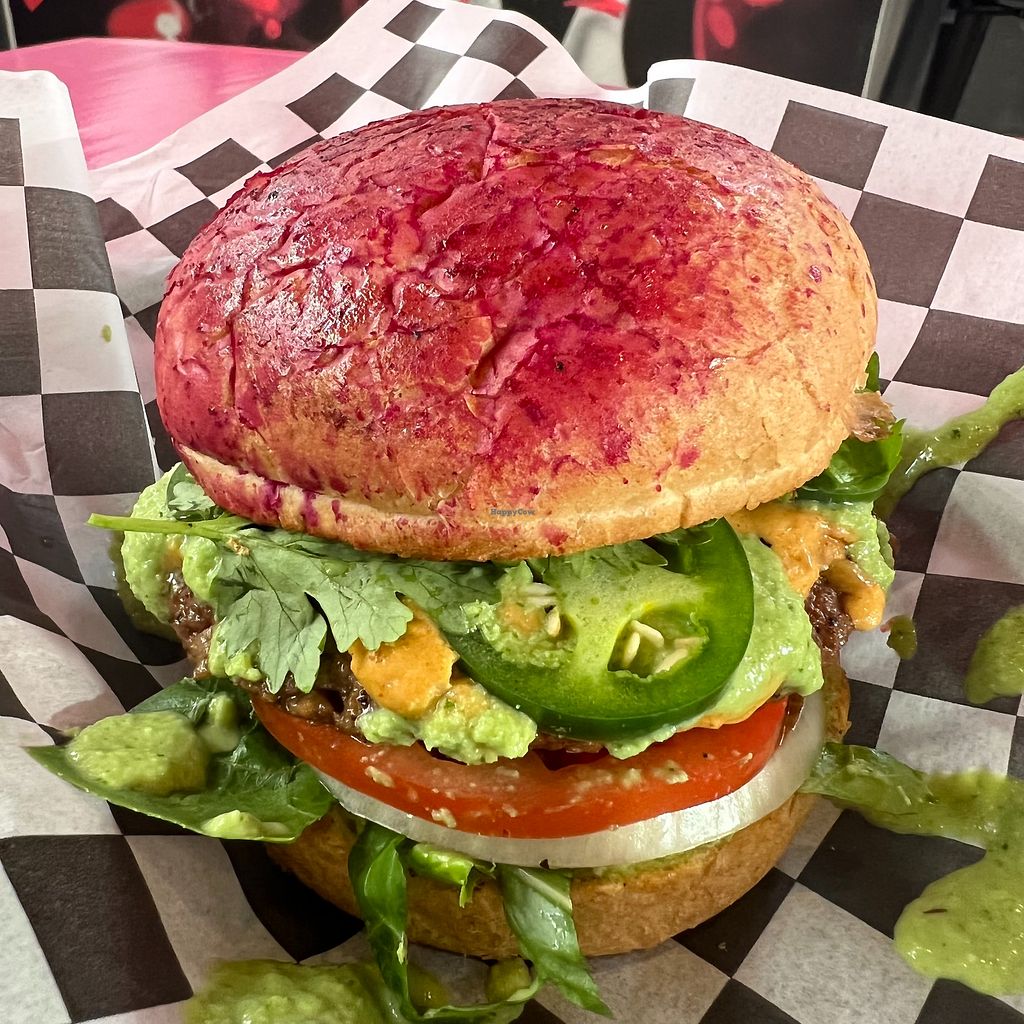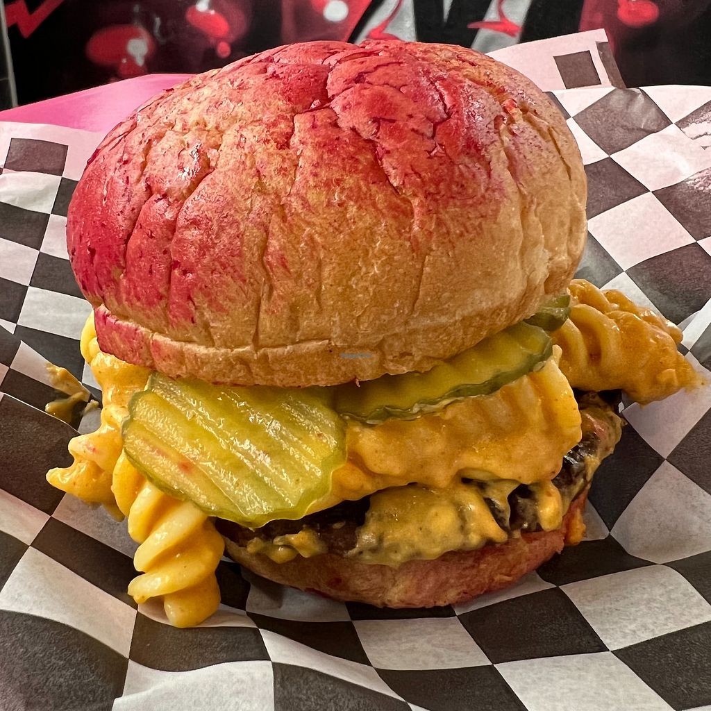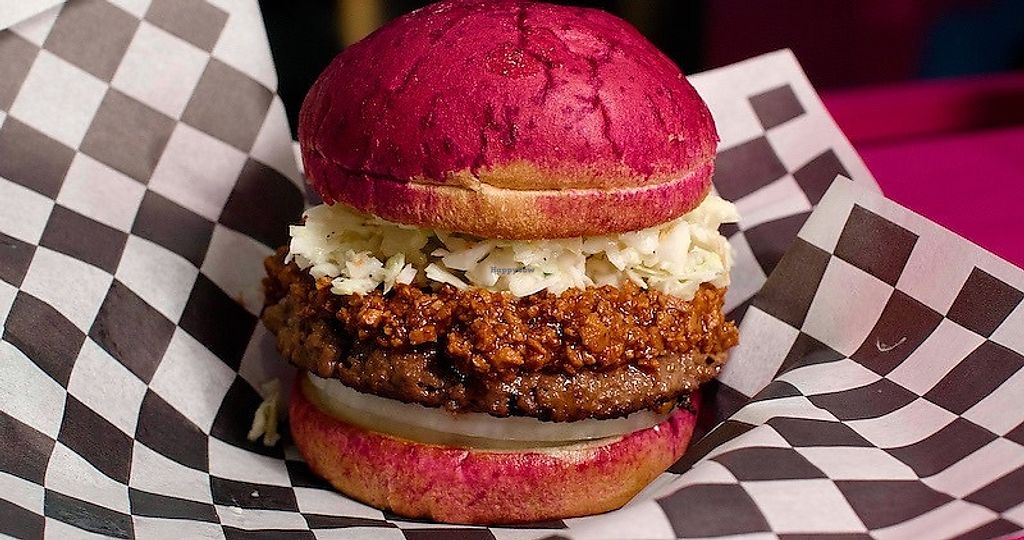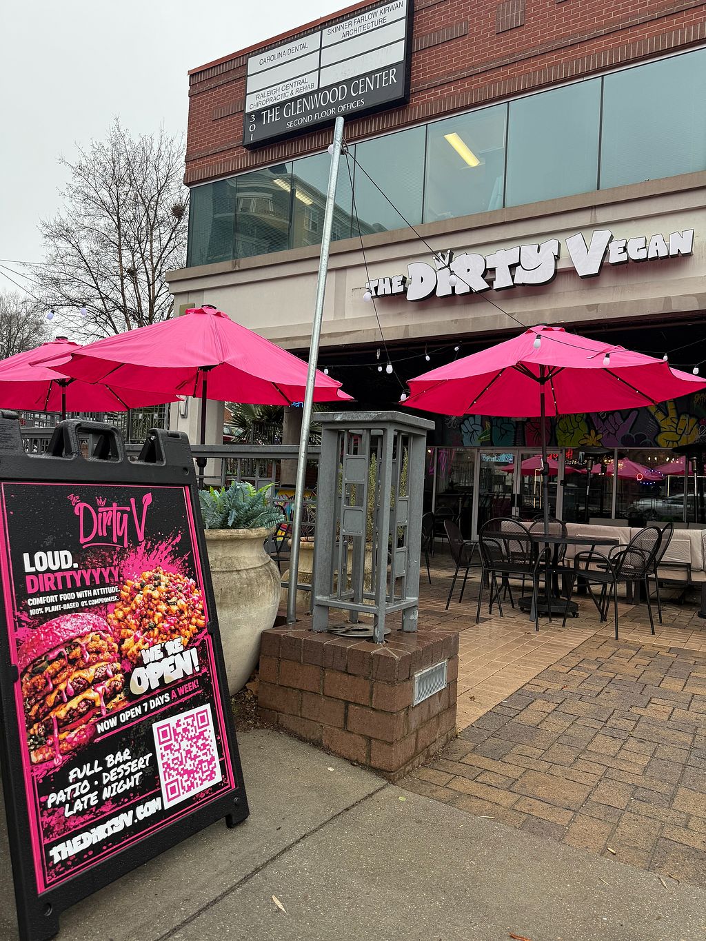 100% plant-based restaurant offering clearly labeled dishes like “Basic Betty” (4oz burger, lettuce, tomato, onion, pickles, signature dirty v sauce), “Big Betty” (double patty, house sauce), “Smackdown” (burger with mac n chz, crispy onions, pickles), “Nashville Hot Sandwich” (fried plant-based chxn, pickles, ranch-style sauce), “Taco Crunch” (tortilla chips, chili, queso, black beans, pico), and more. Open Mon-Fri 11:00am-10:00pm, Sat 10:00am-2:00am, Sun 10:00am-10:00pm.