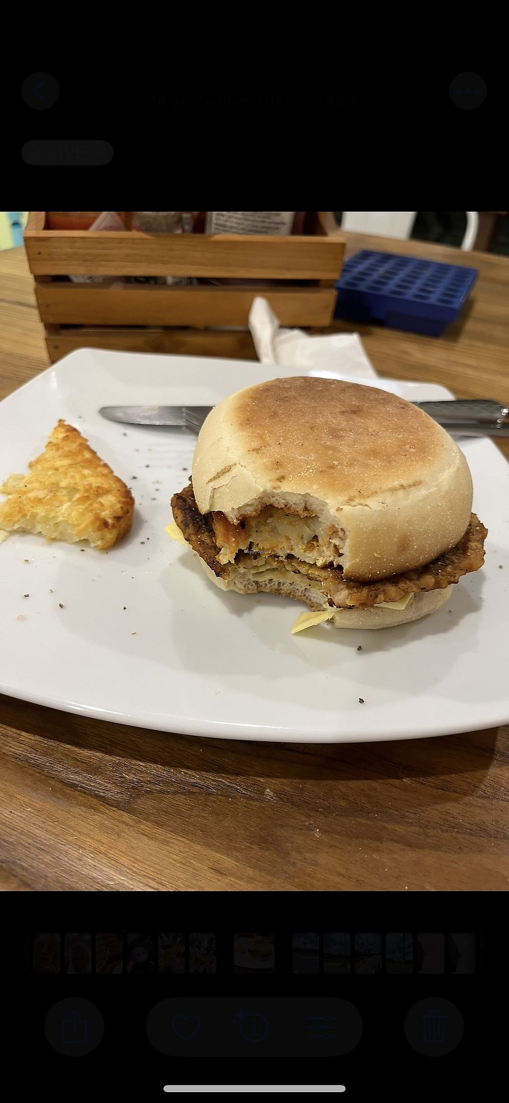 We opted for 1 vegan bacon breakfast sandwich and 1 vegan sausage sandwich. 210 baht for a combo!! Combo includes coffee and hash brown, extra 20baht for oat milk which I was happy pay for as the deal was great value. Perfect for a vegan/non vegan group as they also have meat options.