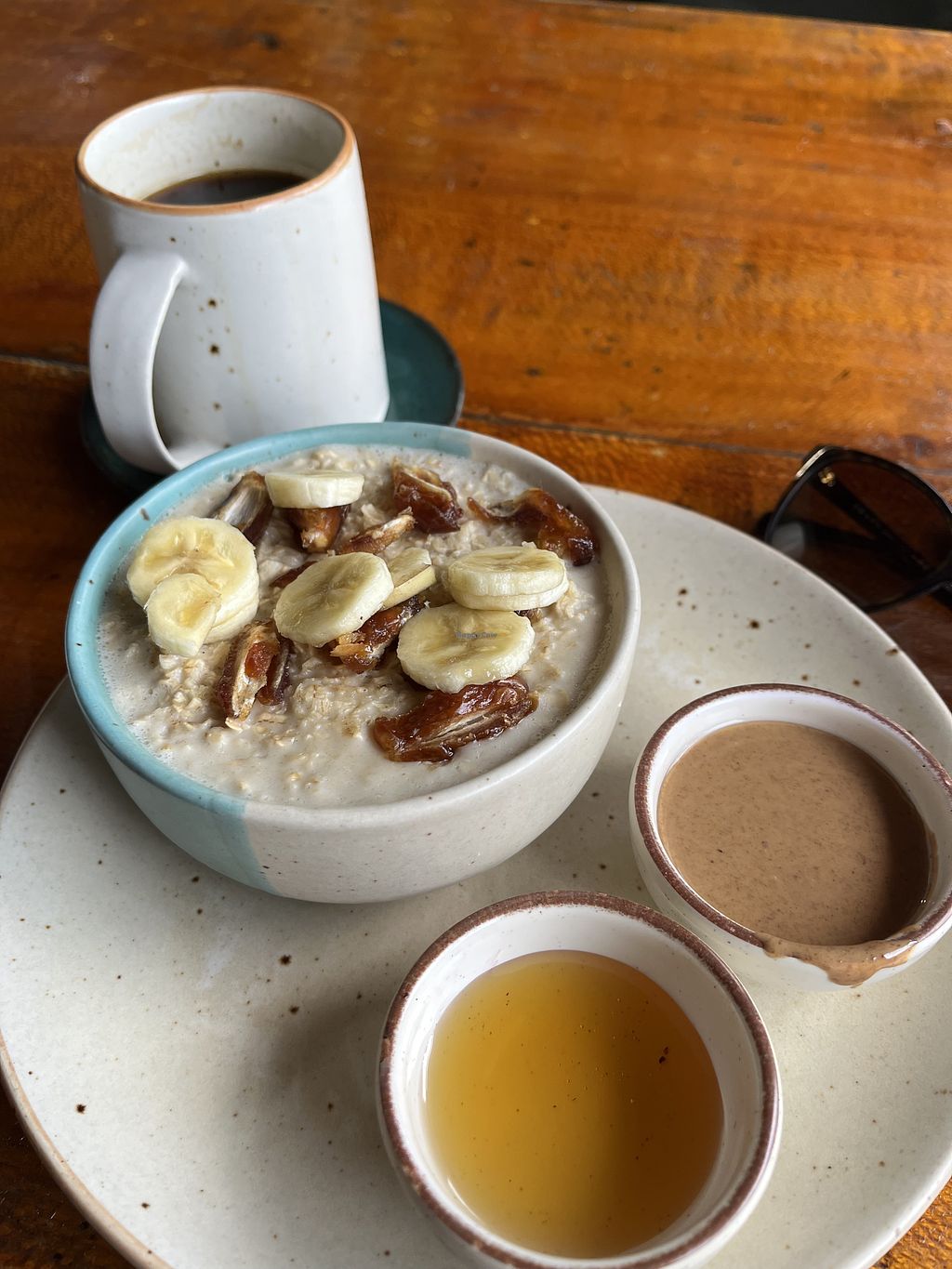 Oatmeal porridge with added banana and date syrup instead of honey