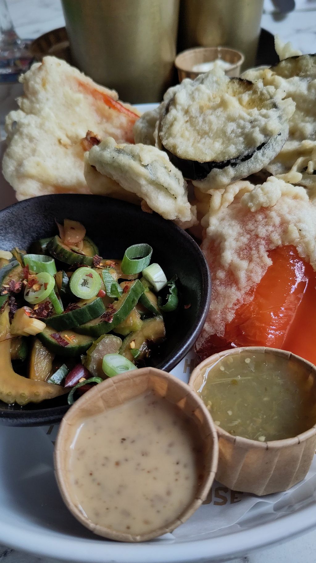 Staff is very friendly. Three vegetarian dishes, the battered veggies dish is vegan.