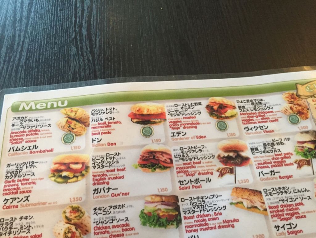 Yesterday, we had the "California Bombshell", which is vegan, if you ask to hold the cheese--full of sweet potatoes, avocado, lettuce, tomatoes, alfalfa sprouts, onions, and (special order) fresh basil too. We've had their Venusian Vixen sandwich a couple times, and it's also delicious, especially for Tokyo (skimpy sandwiches on soft white bread are the norm). Have tasted 3 kinds of soup and all were really good.