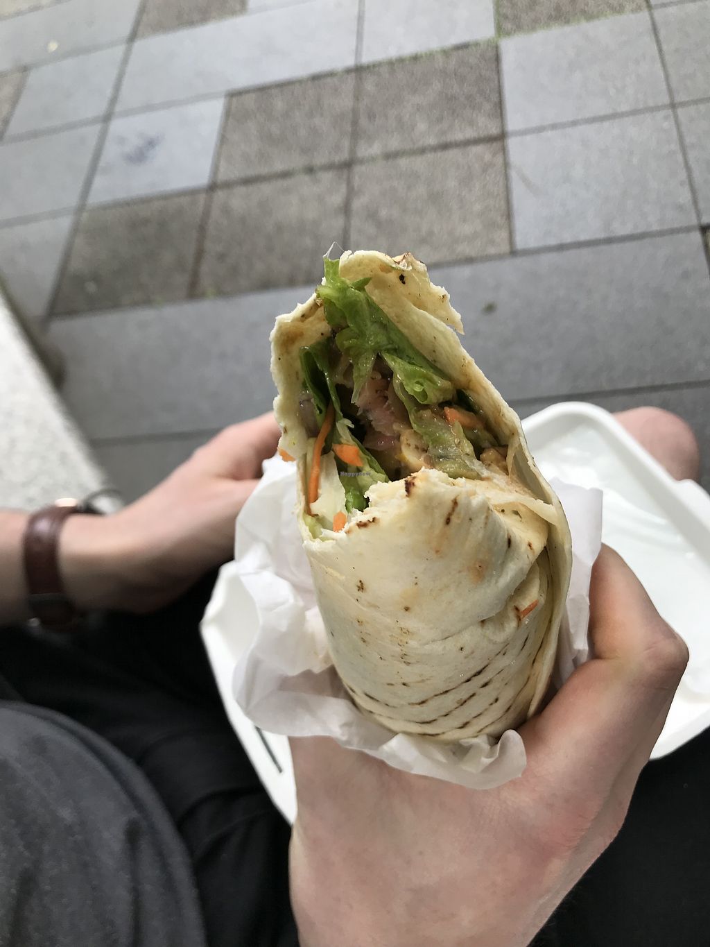 i had the chickpea wrap, i asked the man at the counter if it was vegan and he said he could make it vegan (so probably ask before you order). it was a good size, and really good! had it with the fries, which were also delicious (they were wedges). the people were super friendly too! fair warning though—food is a tiny bit on the pricey side.