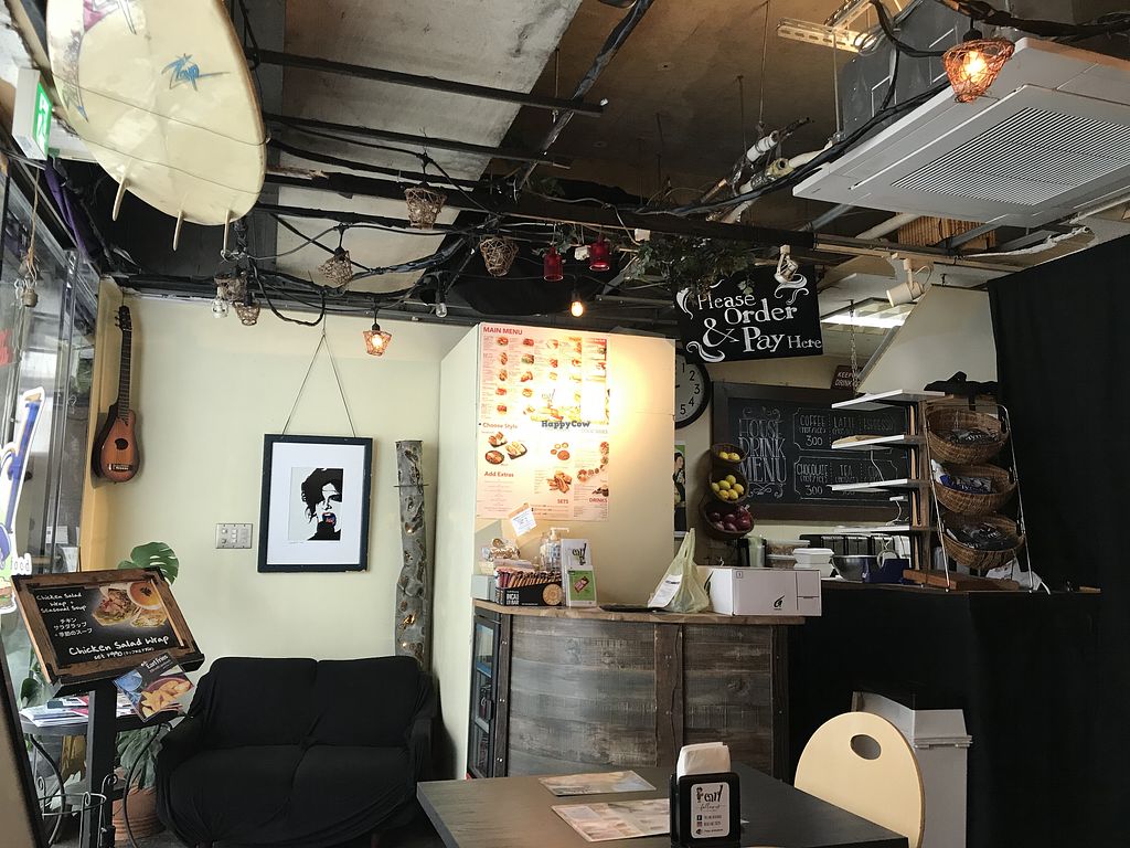 Serves meat, vegan options available. Makes western-style sandwiches, with several being vegetarian and possibly could be made vegan by elimination of cheese/mayonnaise and substituting bread with a tortilla wrap. All sandwiches come with veggies such as fresh romaine and arugula lettuce, red onions, kabocha pumpkin, or sweet potato. Soup on most days don not contain animal products. Has soy-based soft serve in a cone (no animal products). Last order taken 1 hour before closing. Open Mon-Fri 7:00am-2:00pm, Sat 9:00am-1:00pm.