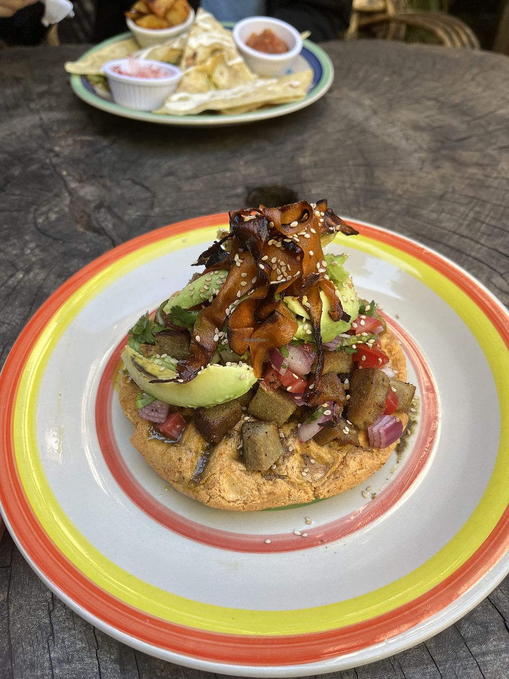 Amazing vegan brunches here. All vegetarian, there is the option of egg/honey but you can clearly get vegan versions with lentil tofu (which was delicious and meaty) instead. The savoury breakfast waffle was absolutely stacked and the macadamia cheese inside the waffle was so so good.