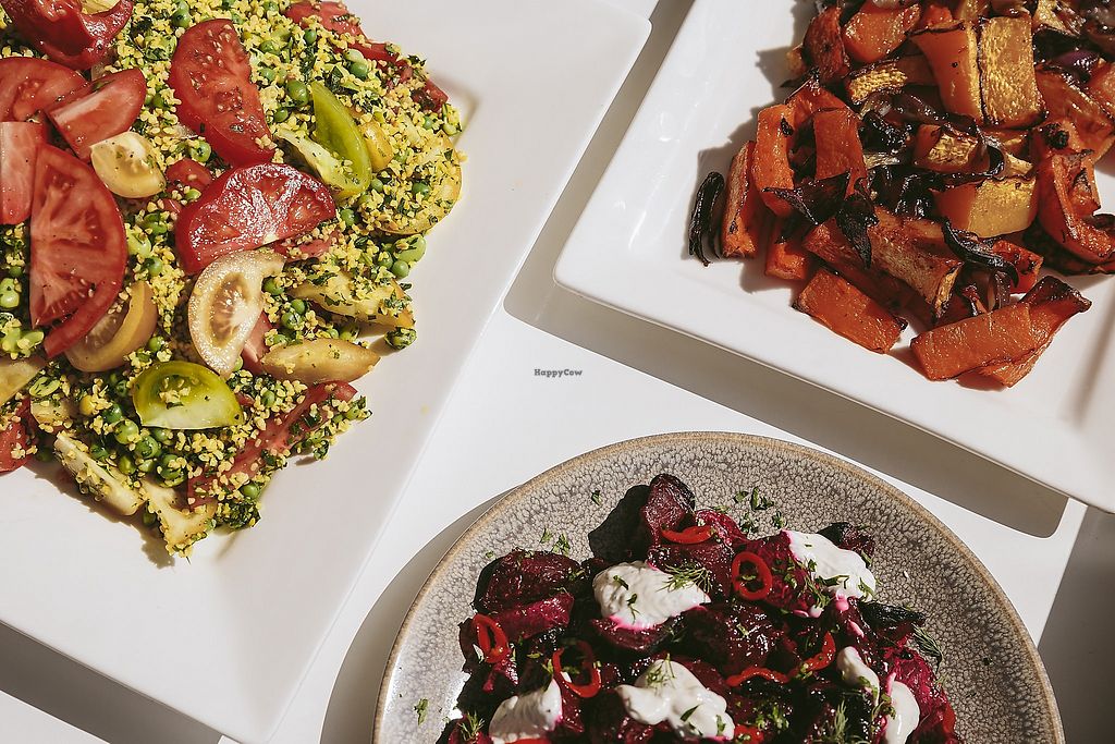 Serves meat, vegan options available. Café in the Biscuit Factory art gallery. Vegan dishes are labelled and include avocado on sourdough and aubergine caponata on sourdough. Open Mon-Fri 10:00-16:00, Sat-Sun 10:00-17:00.