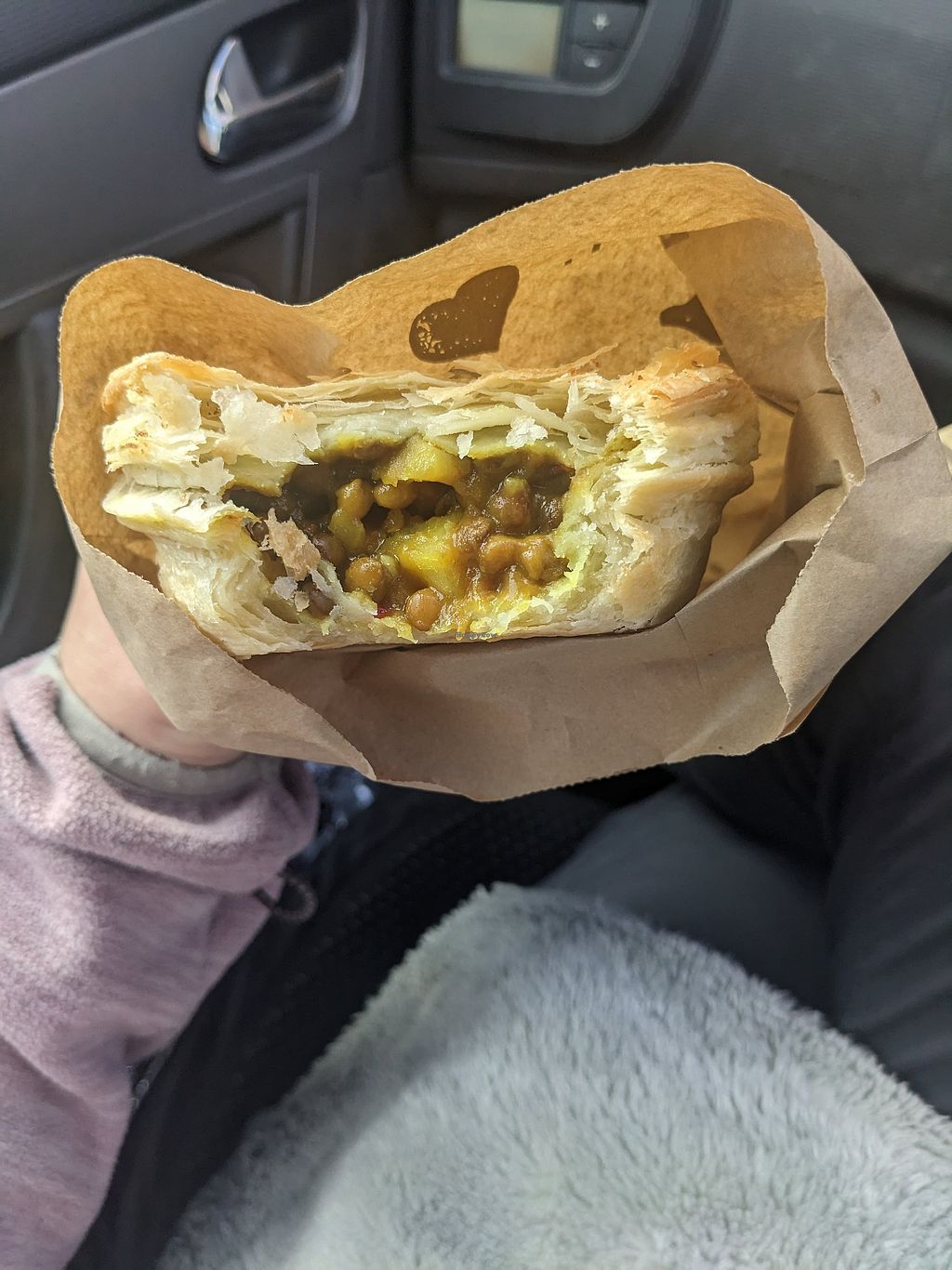 Found a vegan curried lentil pie. Expected it to be a nod to veganism, in a sea of pies, but actually it was really nice. The only thing that would improve it is some wholemeal pastry.