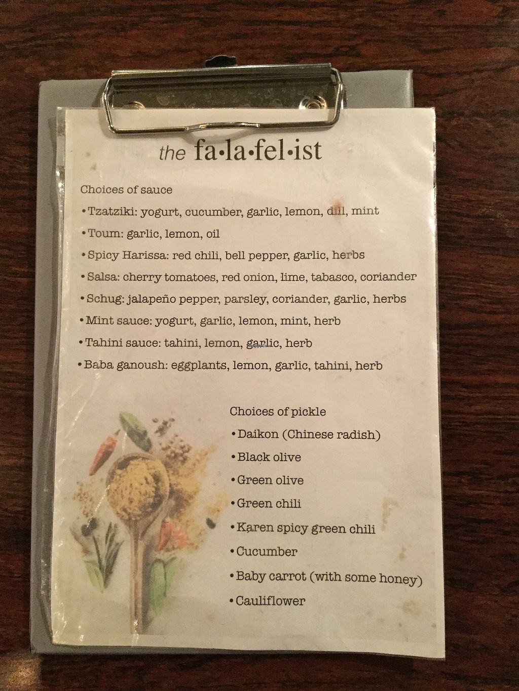 We really enjoyed our visit to The Falafelist. Nice restaurant setting, quiet and relaxing. Lots of vegan choices too.