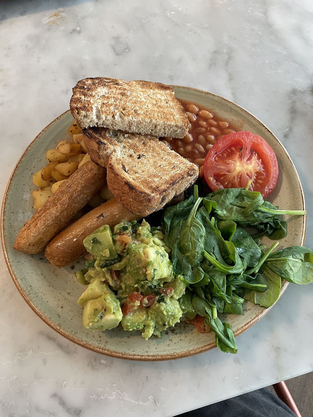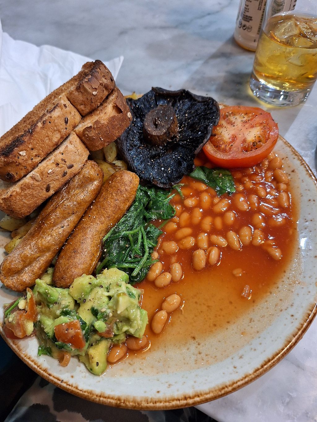 The only breakfast is a full breakfast with usual tomato, mushrooms, Vegan sausage with spinach and avocado.