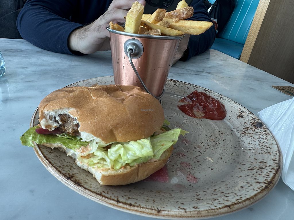 If you’ve been in Dublin Airport, Terminal 2 you’ll know that finding vegan options is almost impossible. This restaurant offers a vegan beetroot burger with vegan mayo and chips for €16. It’s not the best burger I’ve had but it’s quite decent. You can also add crushed avocados for €2.