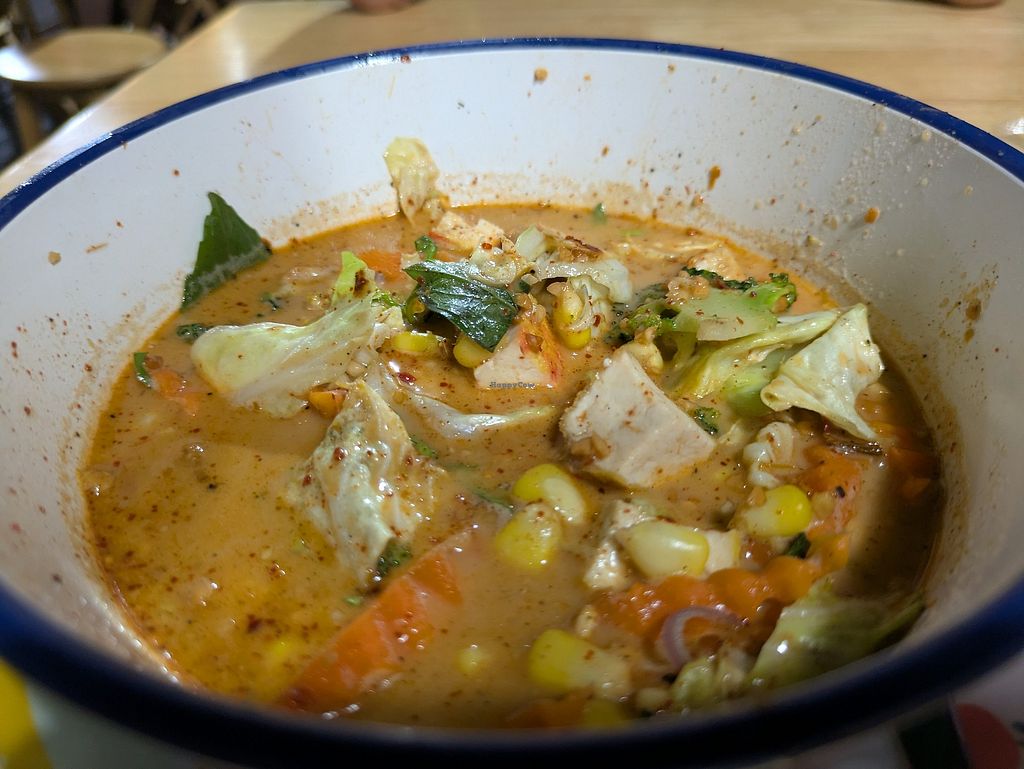 Most of the dishes on the menu can be veganised. I asked for a vegetable curry and they also offered to add tofu to it. It was very good and the "Thai spicy" level that I ordered was indeed very spicy.