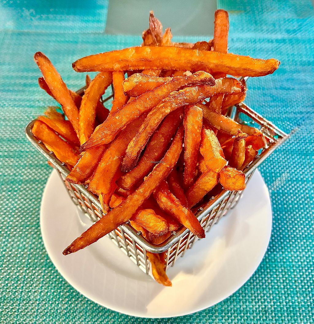 The Farm Salad + sweet potato fries (had them with mustard and were de…