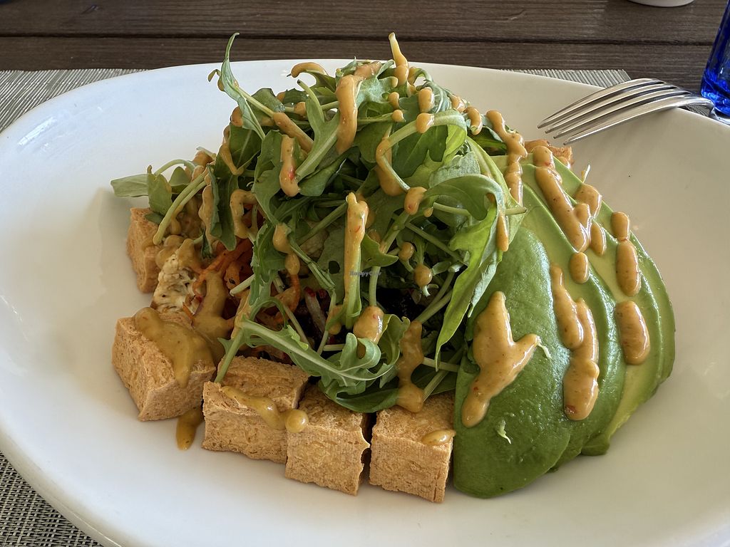 Tofu Buddha Bowl (vegan) with edamame, avocado, black rice, veggies an…