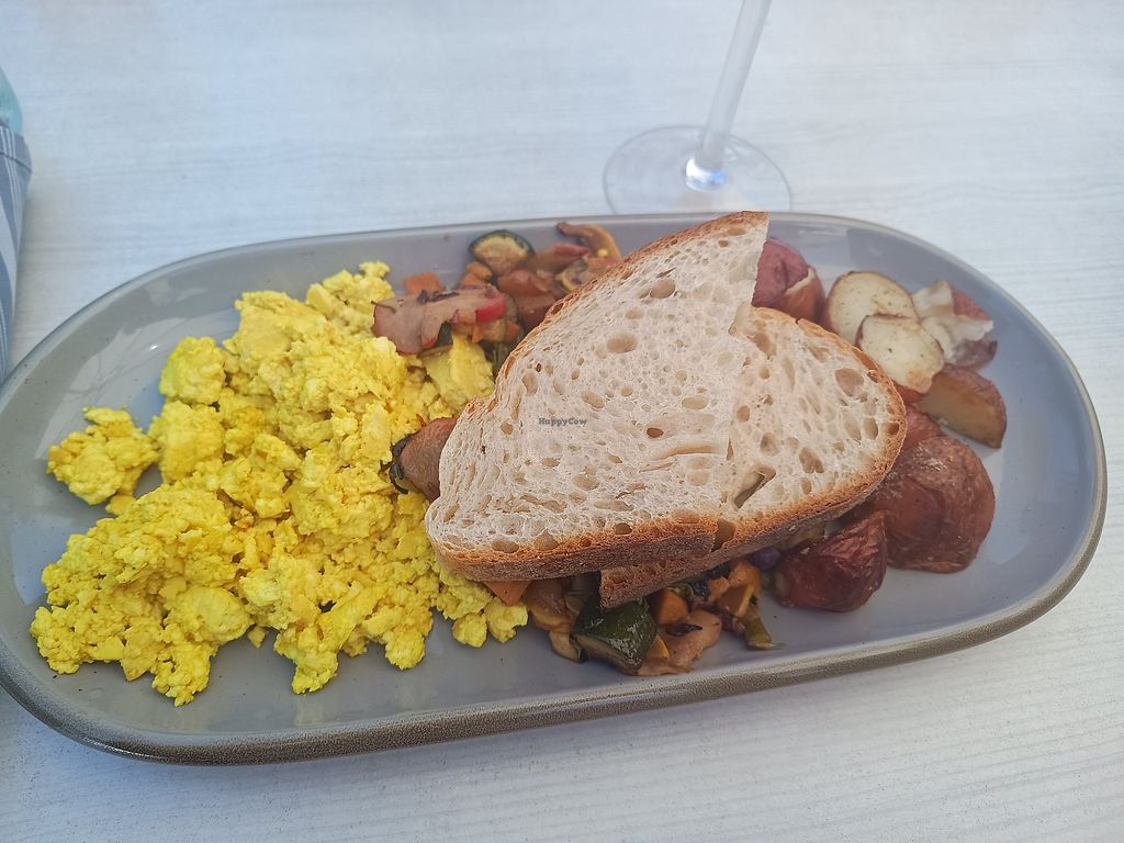 I got the tofu scramble and it was...ok. Not as good as what you can make at home, but their veggie sausage was pretty good and added some much needed flavor. I had really wanted to try the GF vegan pancakes listed on their website, but it wasn't on the menu.
