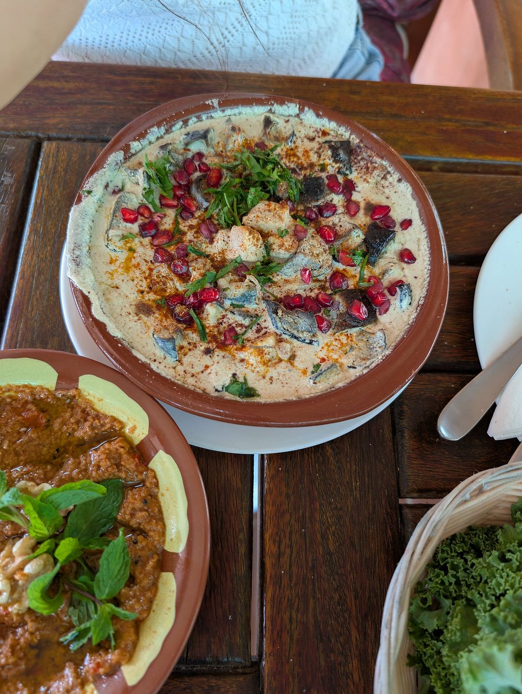 Vegetarian restaurant offering an a la carte menu, as well as a brunch buffet on Sundays. Vegan items include pumpkin soup, fattoush, quinoa tabbouleh, okra in tomato sauce, chilli aubergine, vegetables in tahini sauce, pumpkin parcels, olive fatayer, pumpkin moutabal, seeded flatbreads, zataar manakish, beetroot hummus and ice pops. Non-dairy milks available. Open from November-May. Open Mon 9:00am-5:00pm, Wed-Sun 9:00am-5:00pm. Closed Tue.