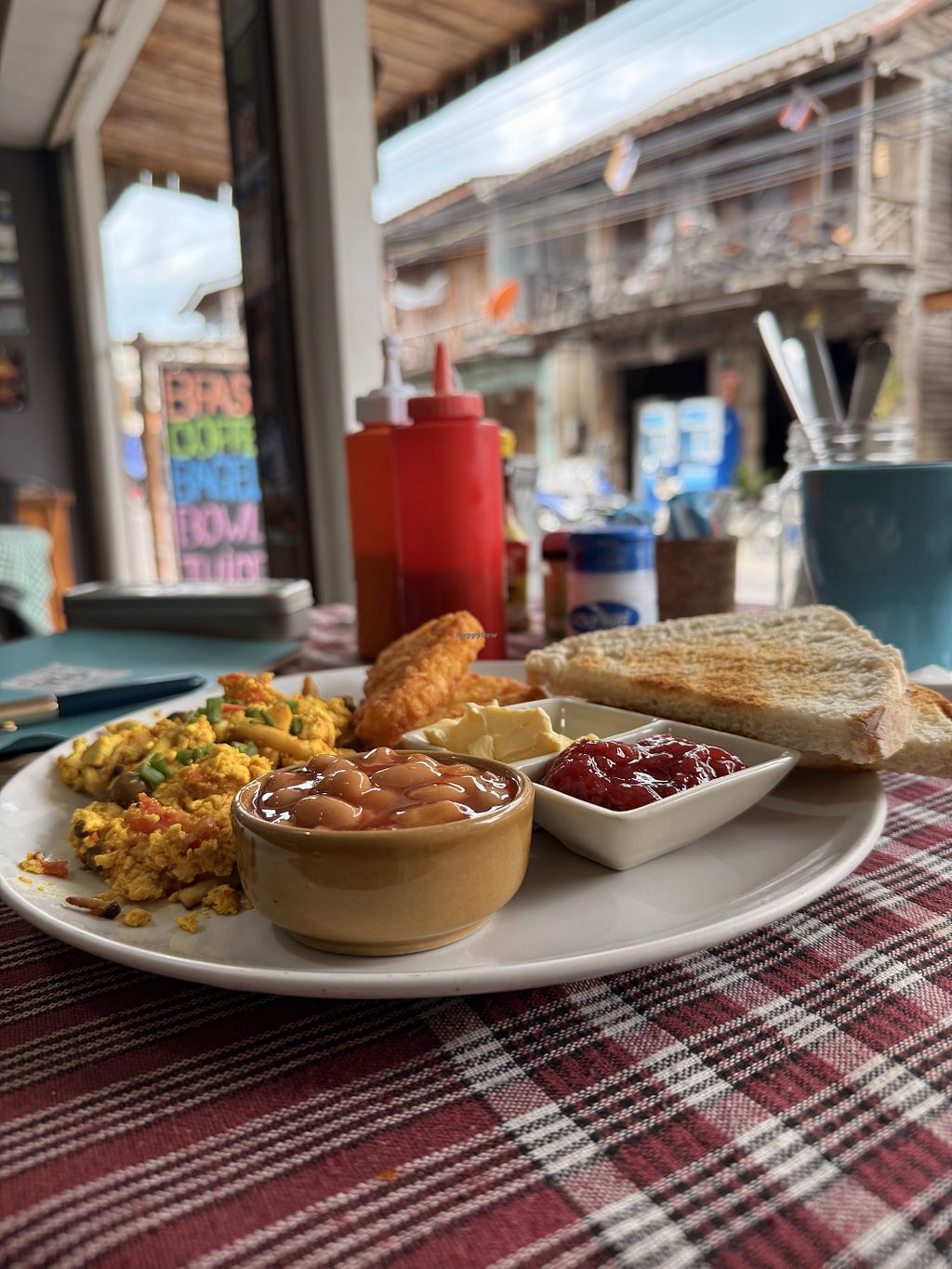 Vegan breakfast. 170 Baht, comes with a hot drink of your choice.