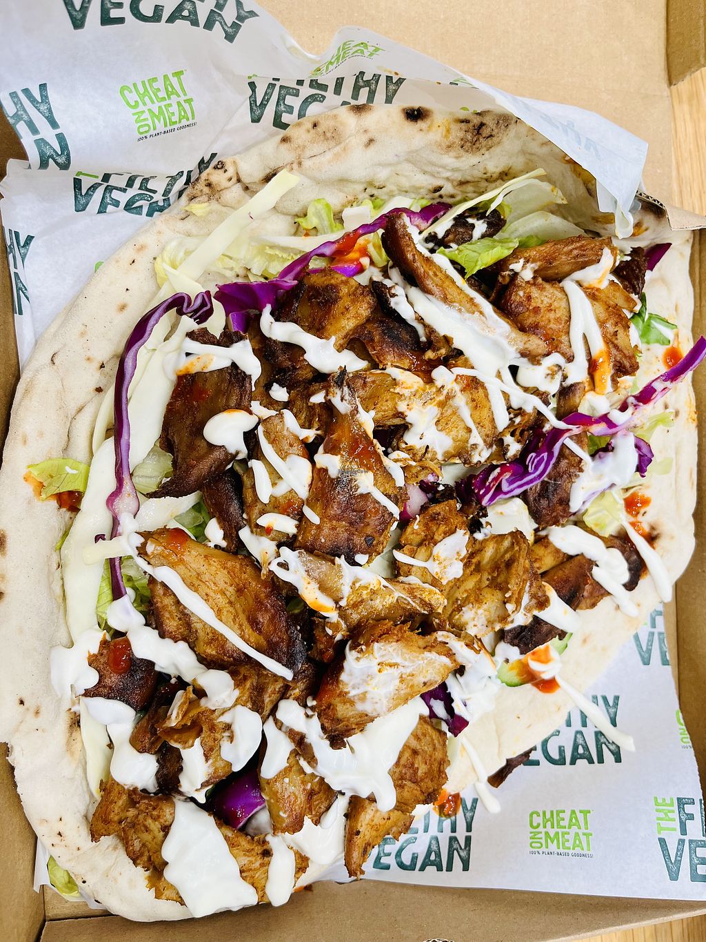 Half eaten vegan kebab and fries