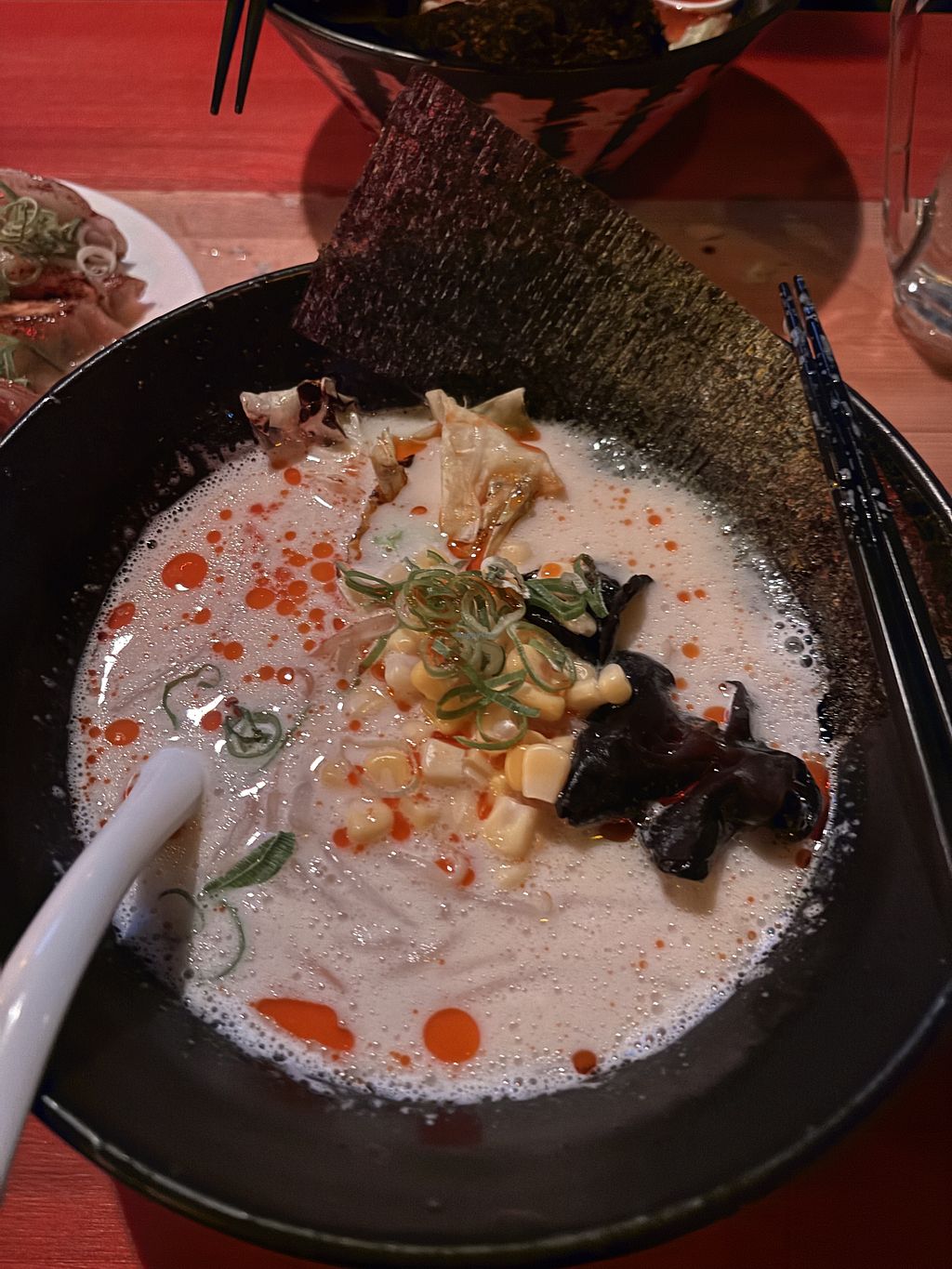 Me and a few friends came in and had a lovely time. It’s got a great atmosphere and dope drinks. I recommend the tomato based ramen as the sesame is a bit sweet!