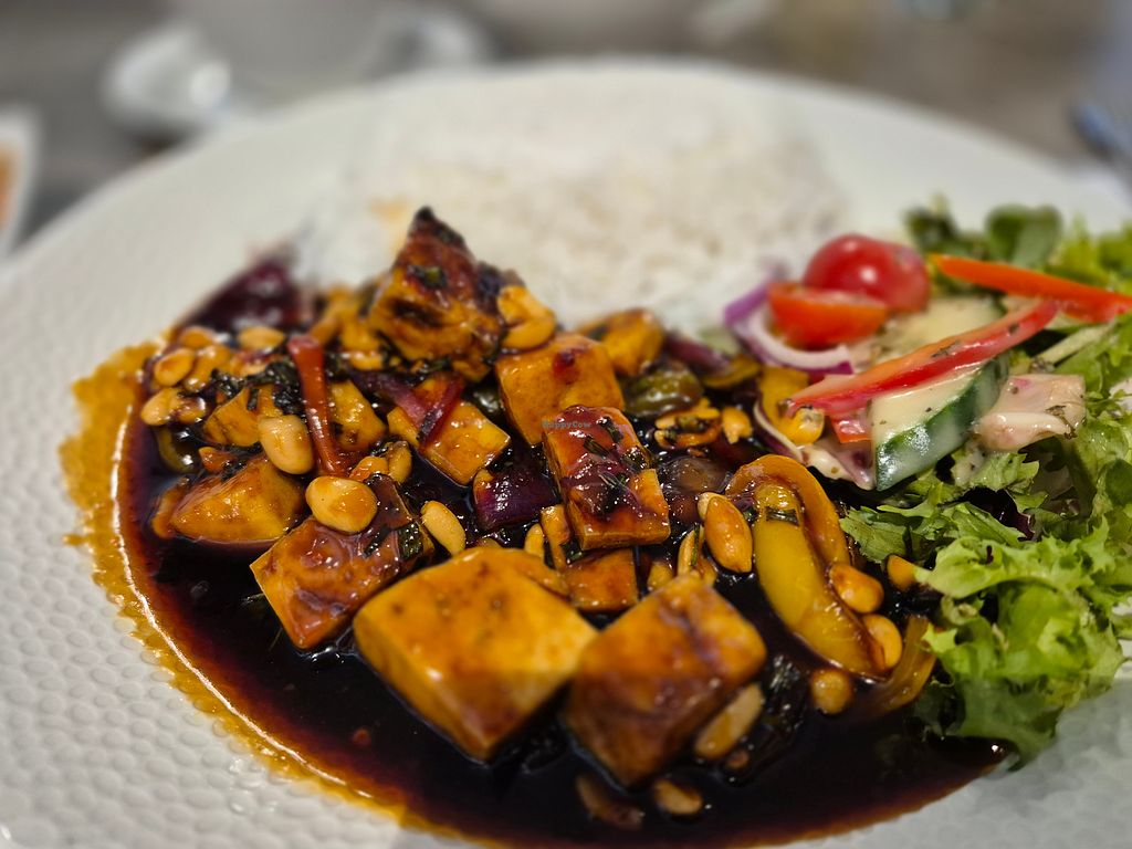 Food was made fresh to order. I had to ask specifically for the vegan menu as the vegan options weren't on the main menu. The options were great and had something for everyone. The peanut butter curry in particular was fantastic