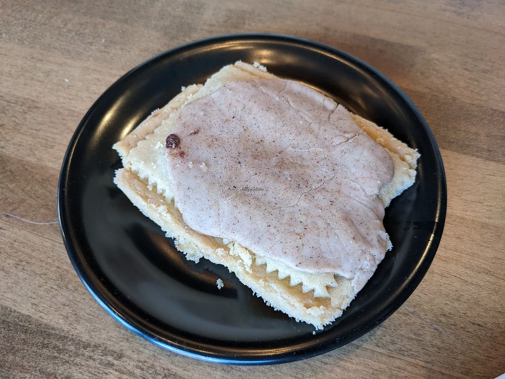 They offer several milk alternatives: Almond, Coconut Oat. I chose a matcha with almond milk. They also have a avocado toast made with Dave’s Killer bread. I did try the vegan breakfast sandwich “FJ Viva Las Vegans” is it made with vegan bread, vegan egg, vegan cheese and impossible breakfast sausage, it was pretty good. They do serve many “Vegan Taste” products as well and pastries that are vegan and gluten free. I did buy a Vegan Taste pumpkin poptart which was delicious.