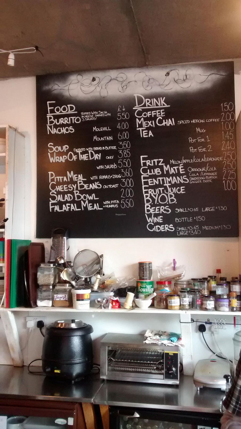 Read moreThe menu doesn't offer the biggest choice but this place is run by volunteers for the benefit of the community - good for them. The things on the menu are simple such as sandwiches and nachos and also soup of the day. Sandwich of the day today was tofu and caramelised onion served with cous cous and green leaves salad. Decent value at £4. 1 coffee and 1 ginger and lemon tea was £2.50. Very inexpensive in my view for Edinburgh.