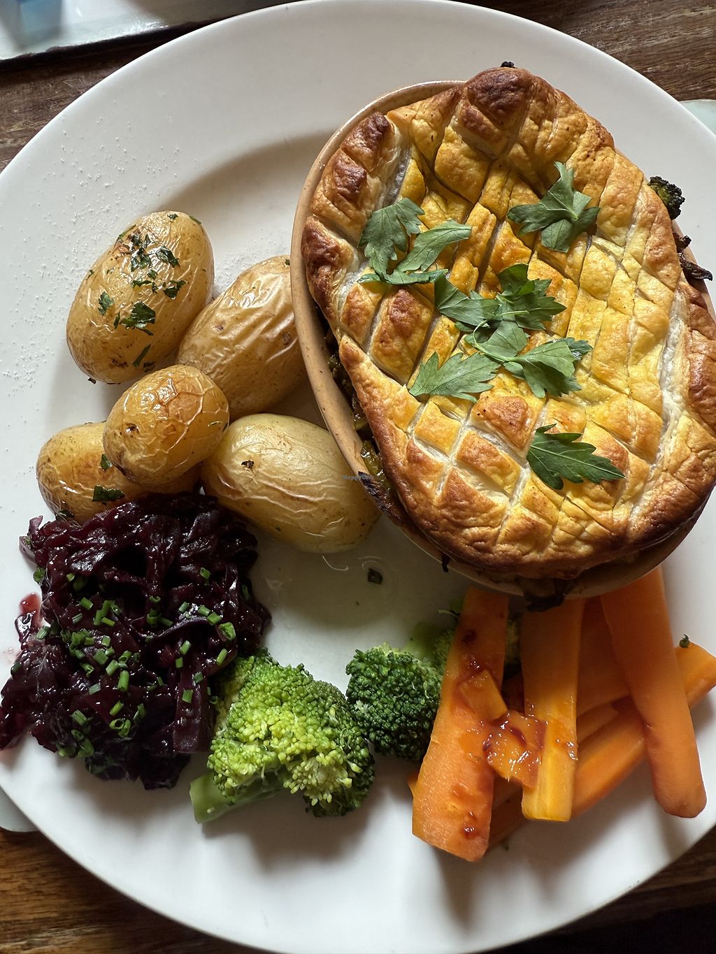 Excellent portions - my curried veg pie was tasty and can earth more spuds and veg on the side. Hand pulled ales are excellent!