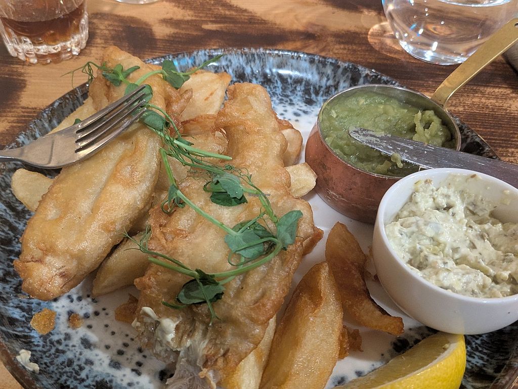 I had the vegan fish and chips and it was excellent 👌🏼. I have been to fully vegan establishments that haven't come close with their versions of vegan fish and chips and I know it's not a dish that is easy to get right, but this was amazing. It came with proper chunky chips, mushy peas and tartare sauce.