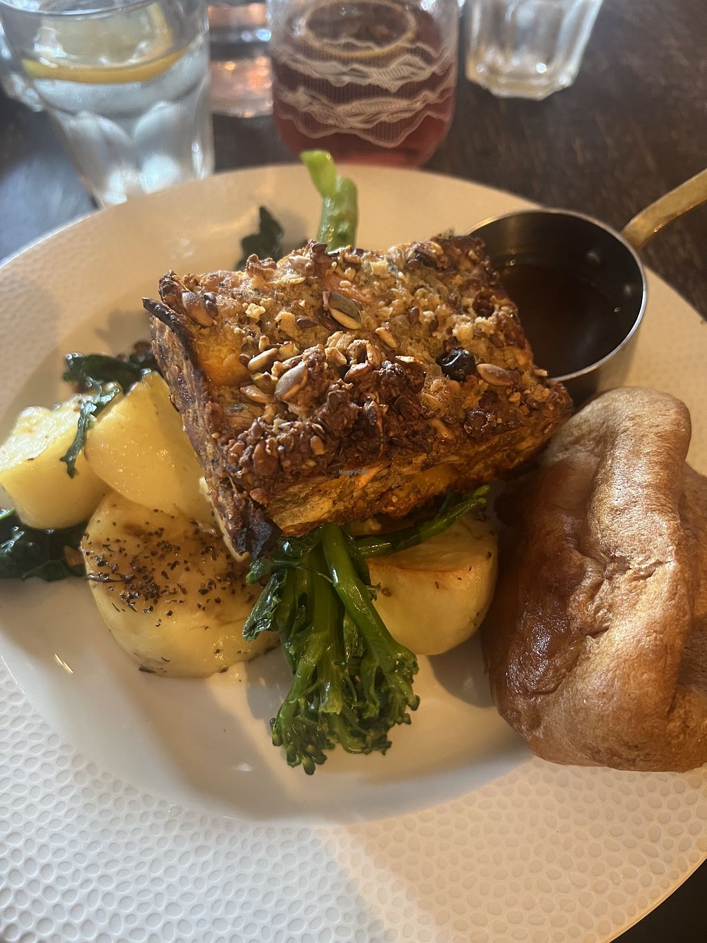 Really nice vegan roast! Labelled vegetarian but it can be made vegan! Nice crumble for desert too