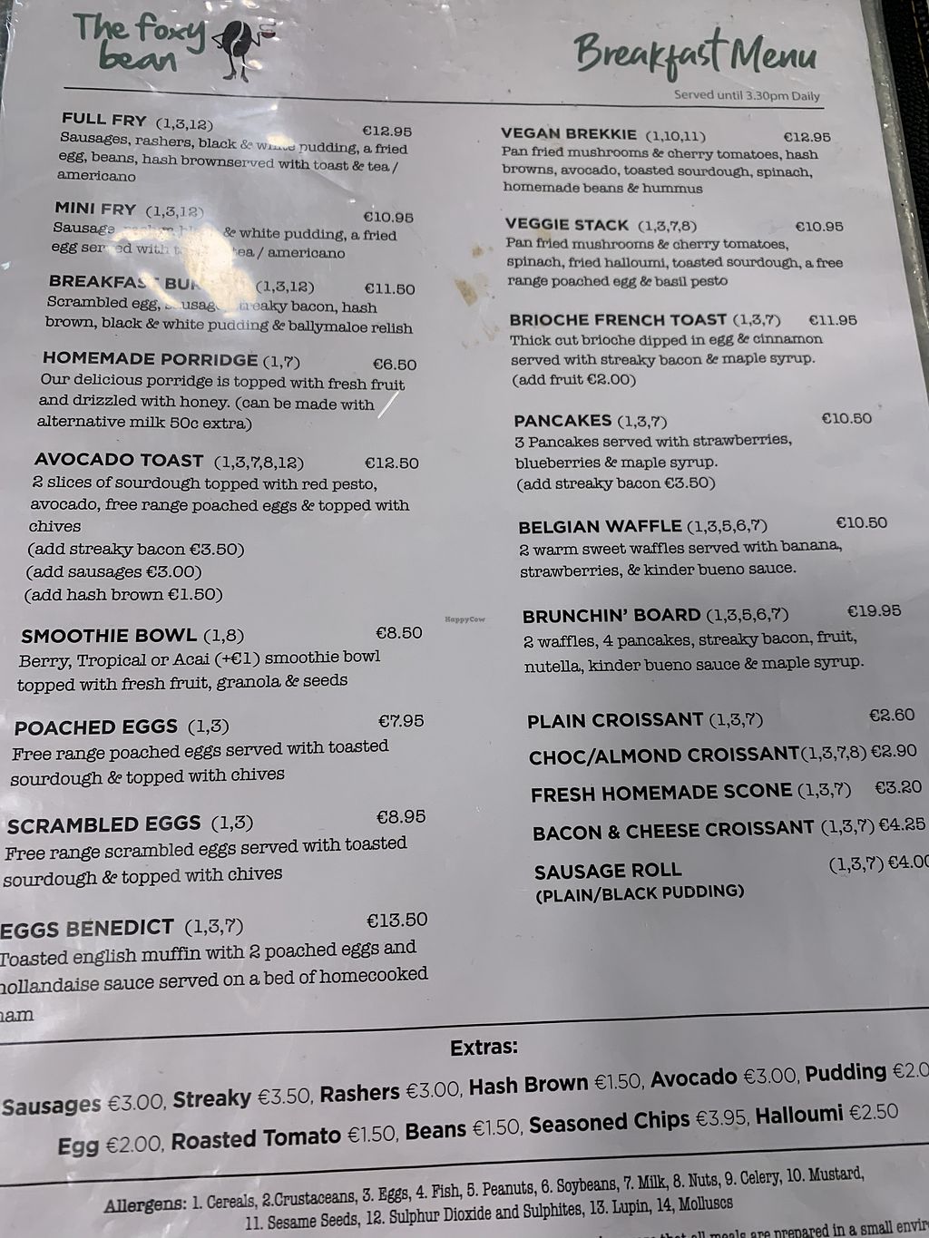 Breakfast menu