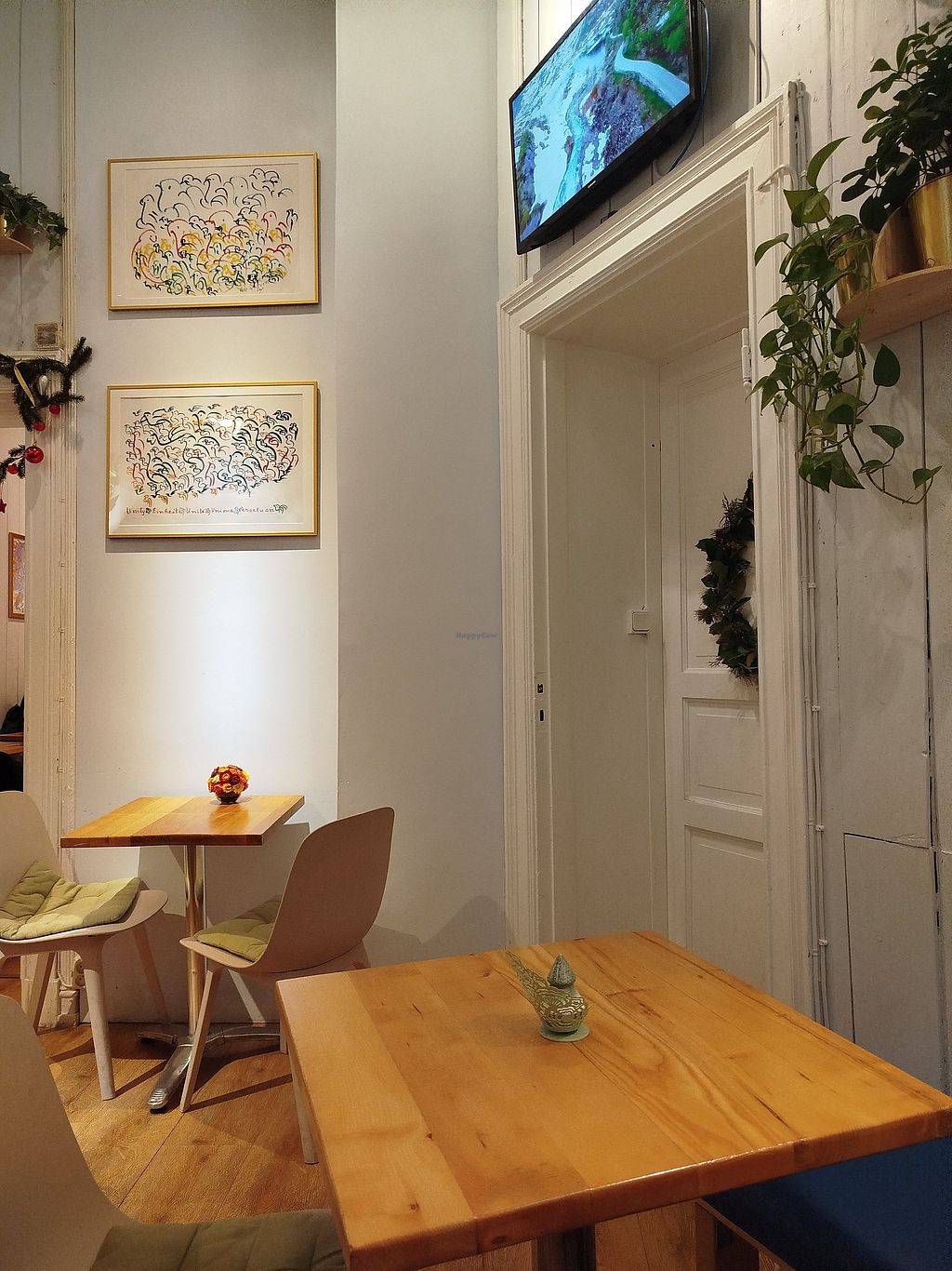 Cozy cafe with an almost fully vegan menu. Most of the food is very healthy - they have soups, curries, bowls, etc. Lots of seating space that invites to stay there for a while.