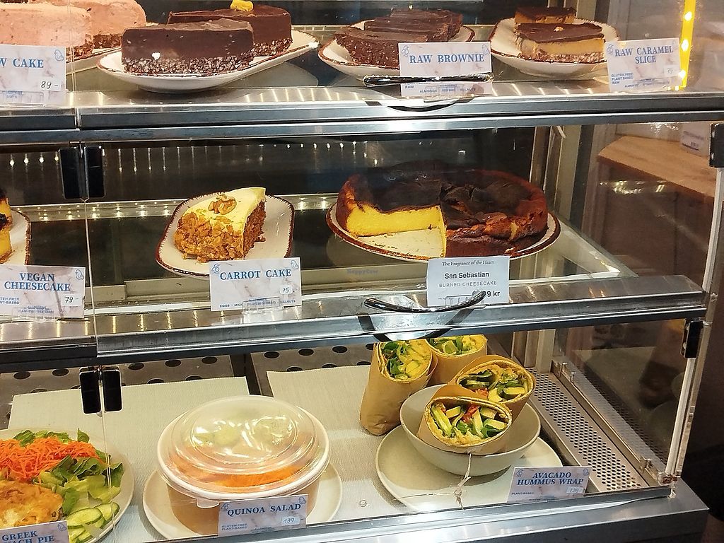 Fragrance of the Heart is a vegetarian cafe with soup, Dahl, avocado toast and many cakes. The staff were helpful in pointing out which items on the hot food menu were vegan, the cakes are marked vegan or vegetarian.