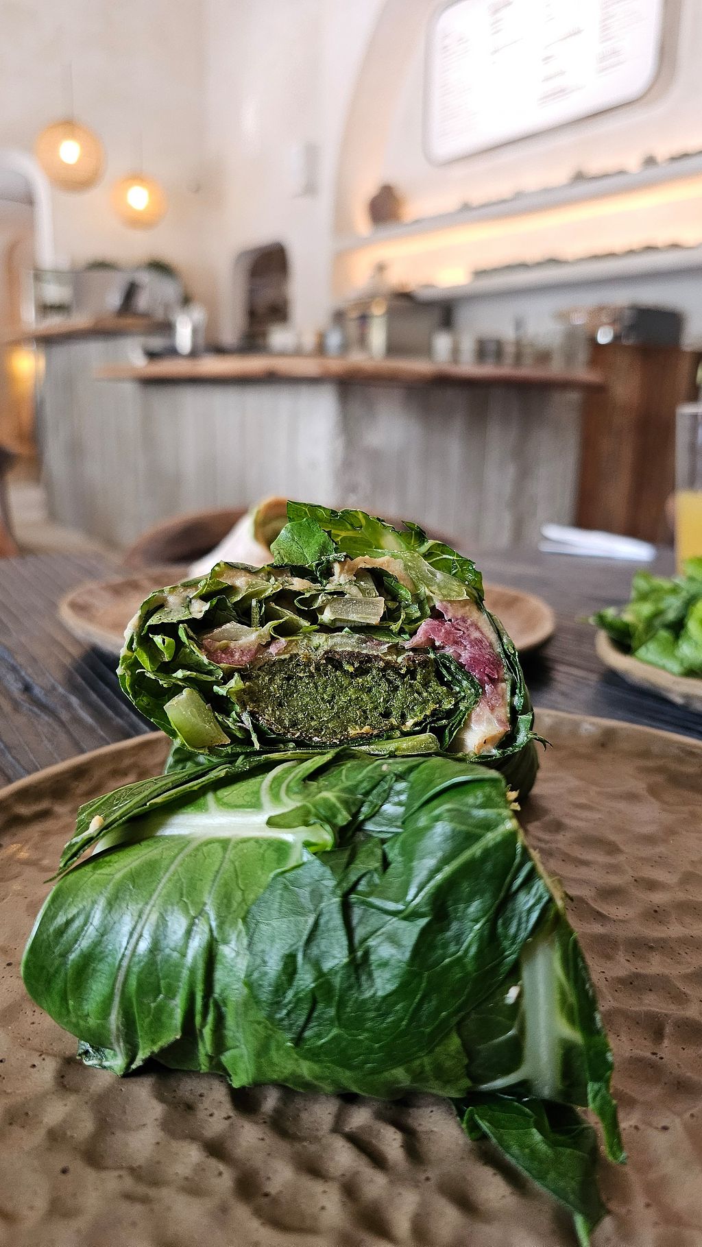 Read morePros: Wrap de falafel na folha de couve, Húmus com pistache, Decoração rústica lindaa