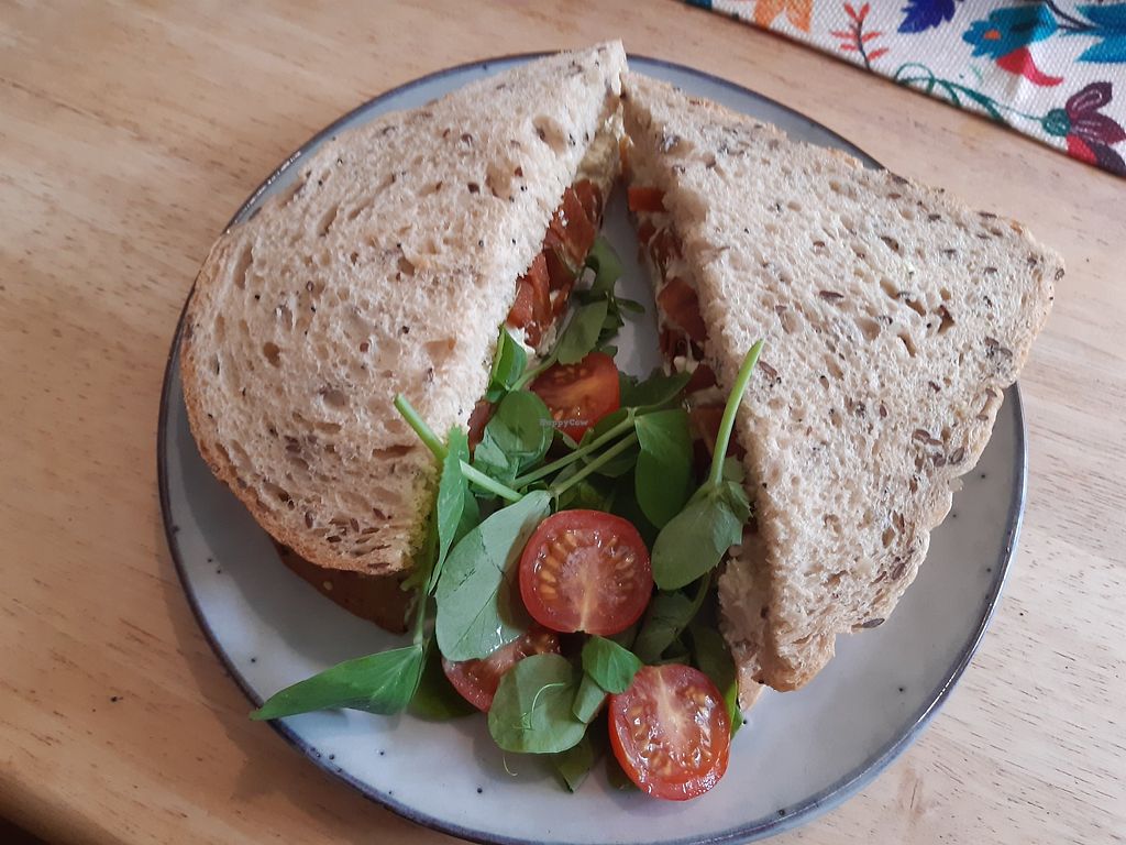 Popped in for a quick lunch when visiting Kendal and had the tofu mayo sandwich with bacun, which I enjoyed. I also took away a slice of cake — it was the last piece of that flavour and, while it looked moist, unfortunately it turned out to be quite dry and crumbled on the first bite. Lovely, relaxed space and vibe. Dog friendly.