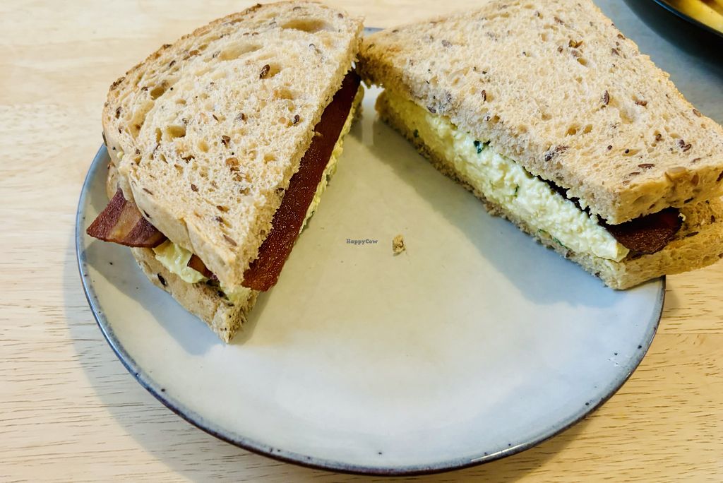 Tasty vegan food 😊 I had the egg and mayo sandwich with bacon which was very tasty!! My boyfriend had the chunky vegetable soup. Then we shared some delicious pancakes.