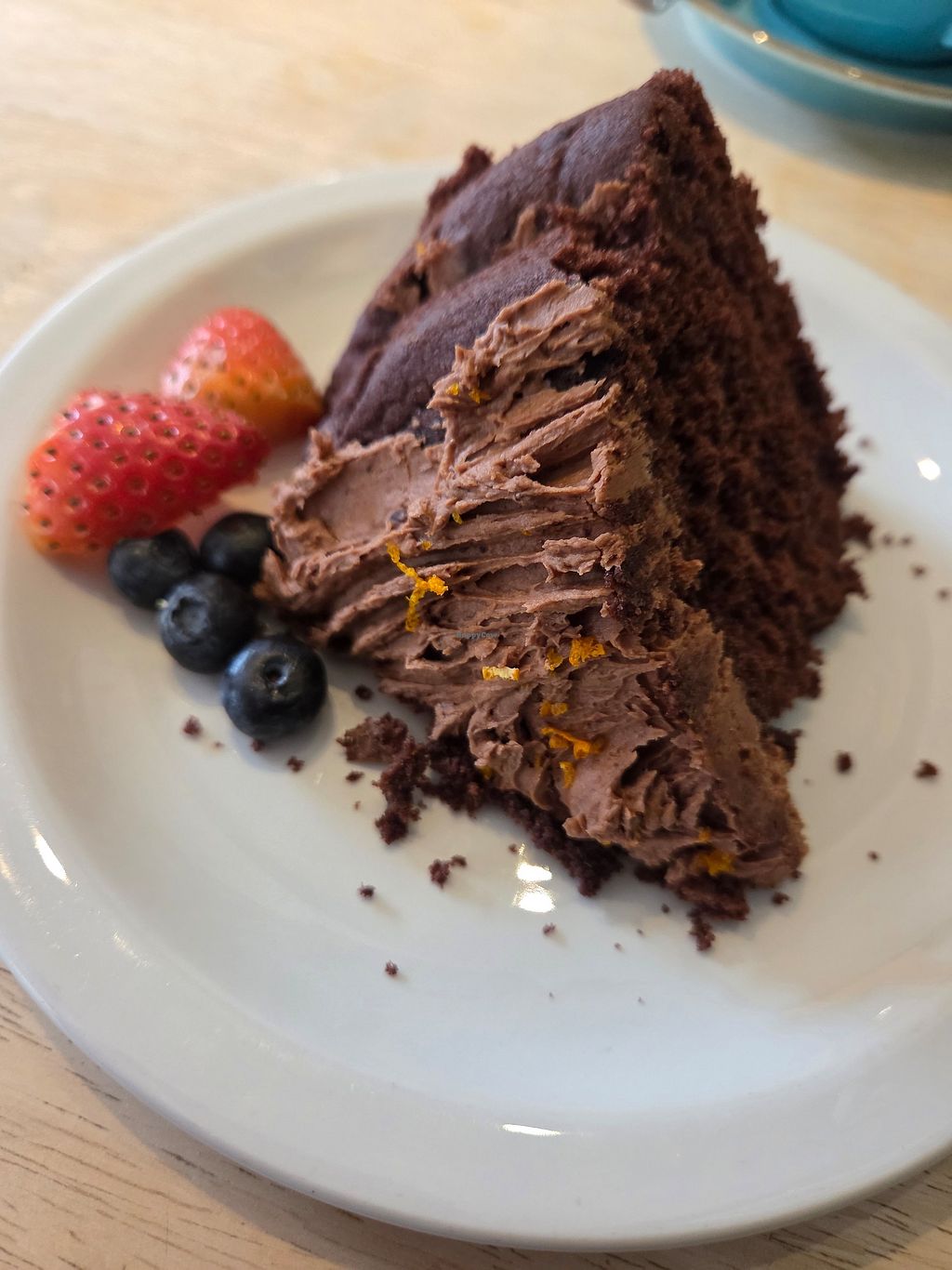 Victoria sponge, lemon cake, cappuccino, and chai lattee