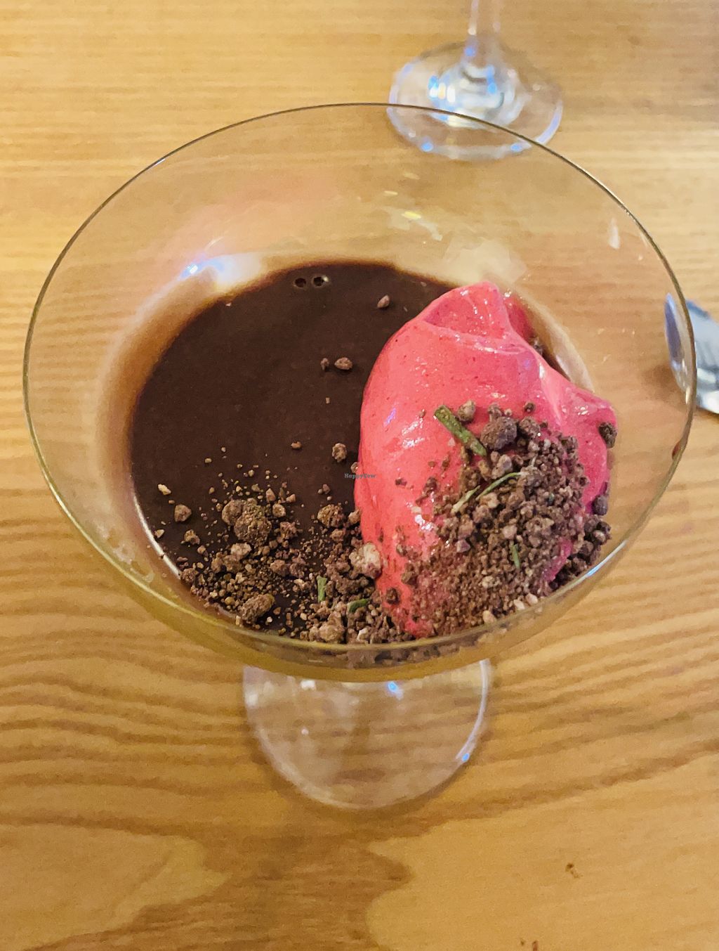 Raspberry sorbet and chocolate moose with chocolate and rosemary grave…