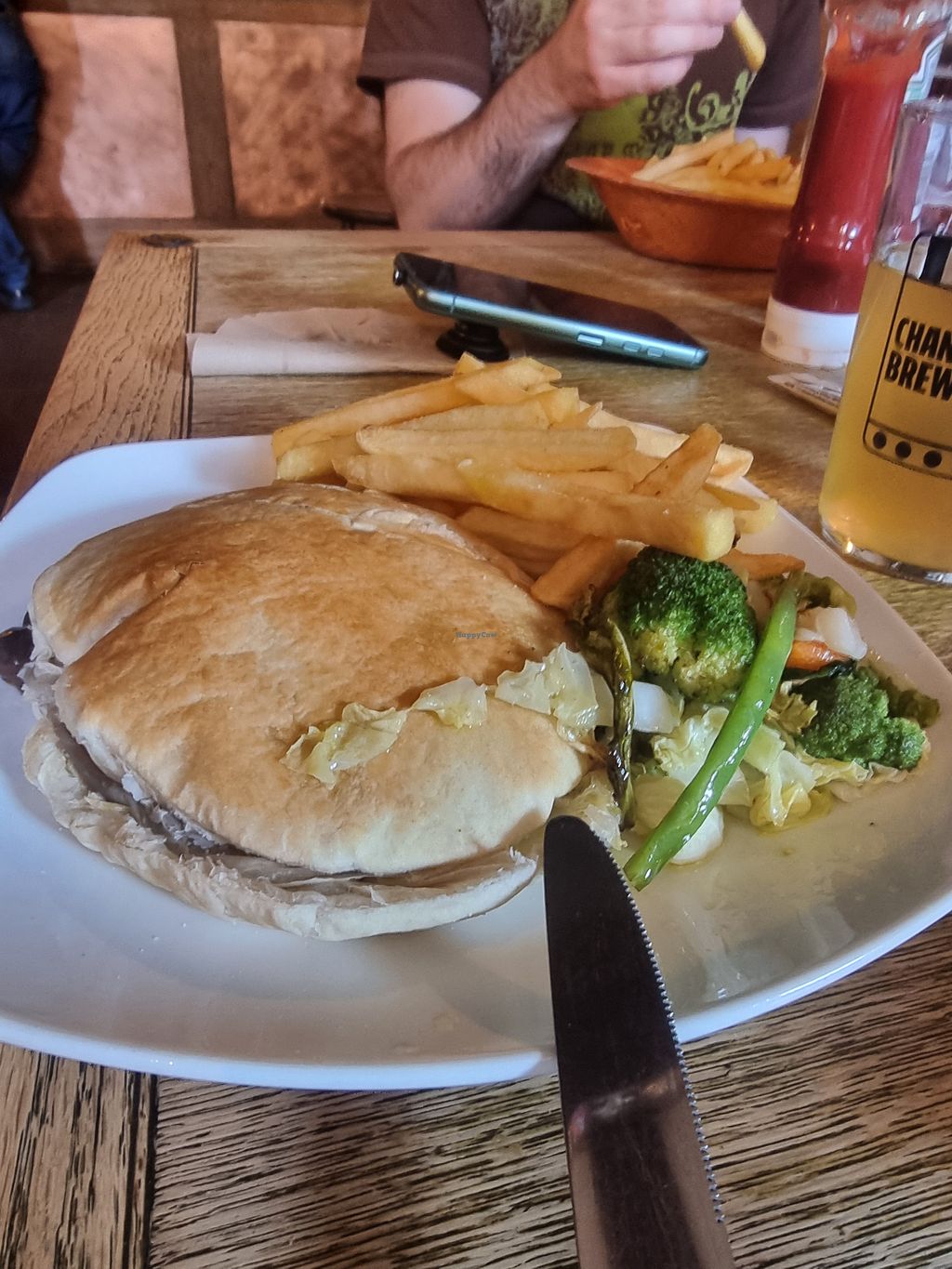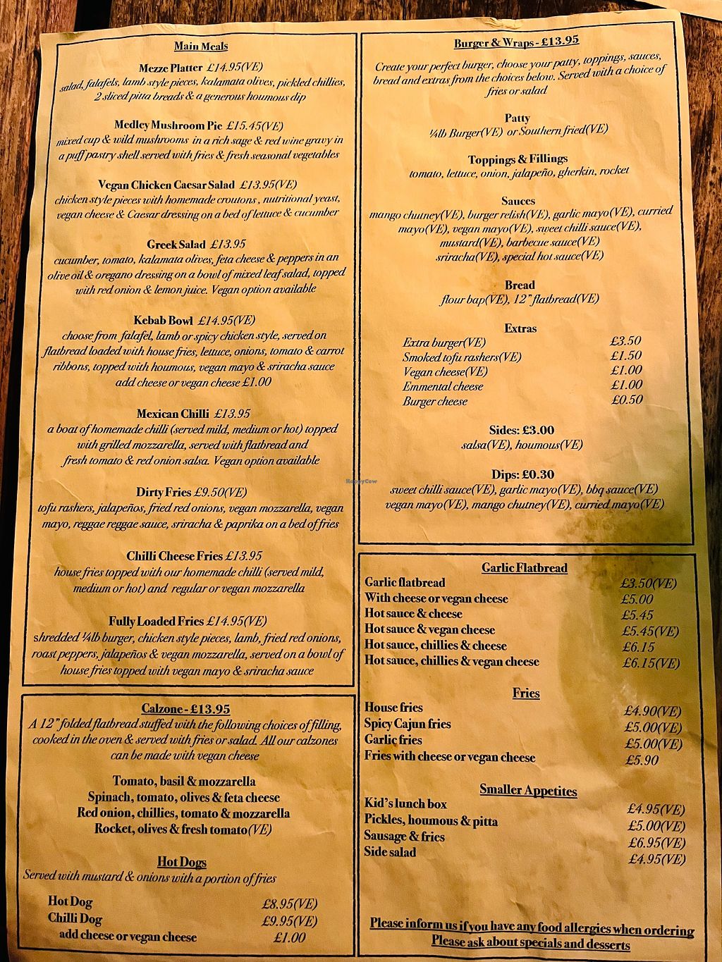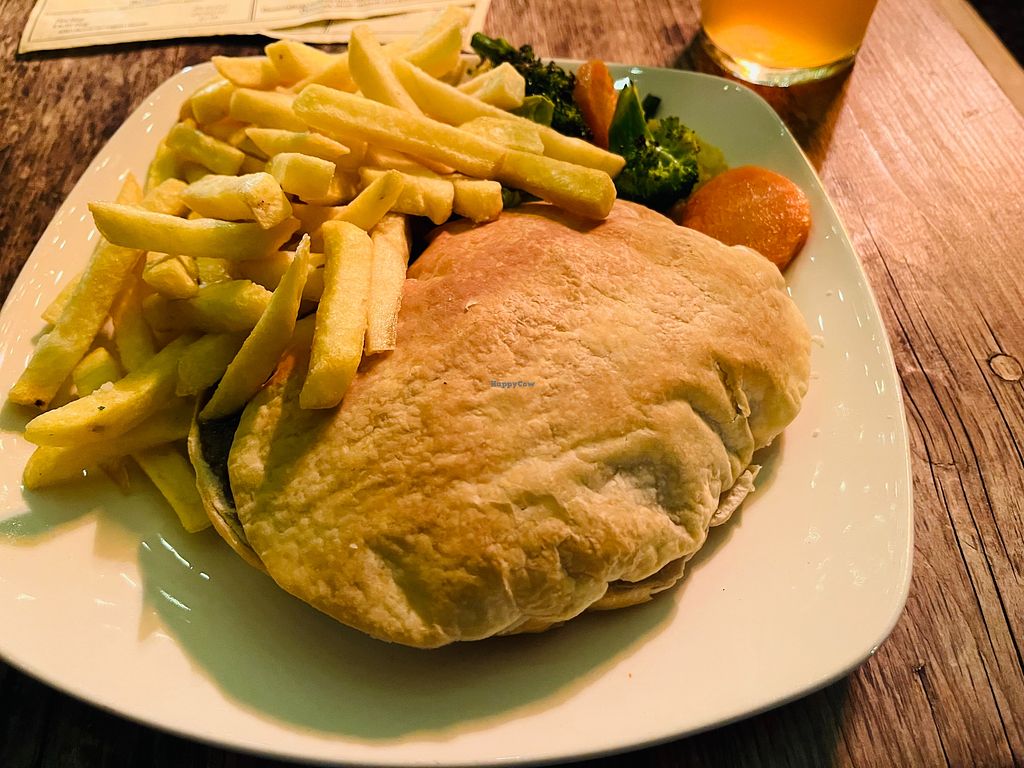 We enjoyed the outdoor area, and the vegan pub food options including mushroom pie. Beer and wines were marked as vegan. Friendly service.