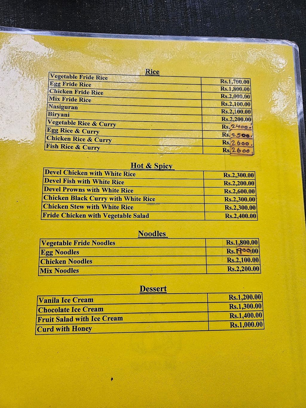 Asked in advance on WhatsApp and confirmed vegan options were available. Not too many though when we arrived. No vegetable curry only hoppers with dhal and vegetable koththu. Fairly expensive but I guess touristy area.