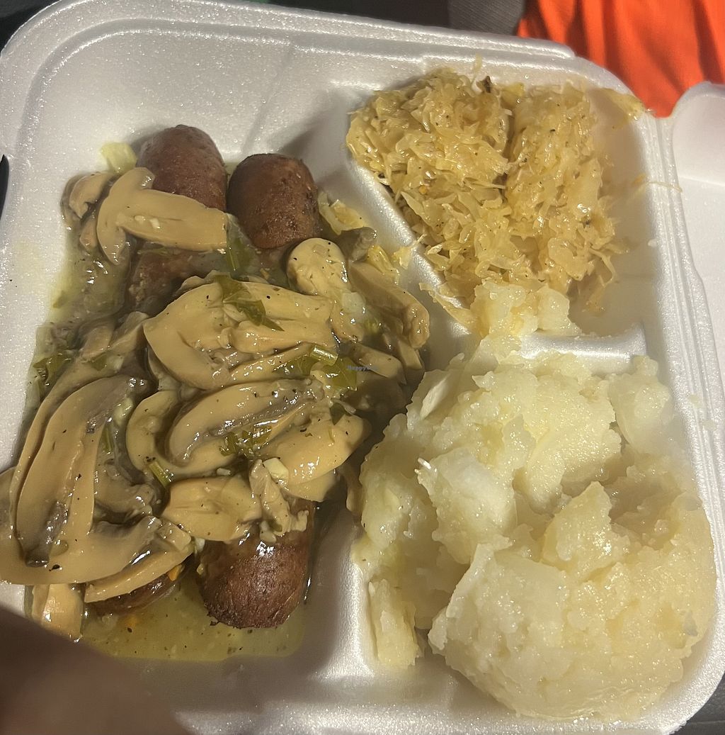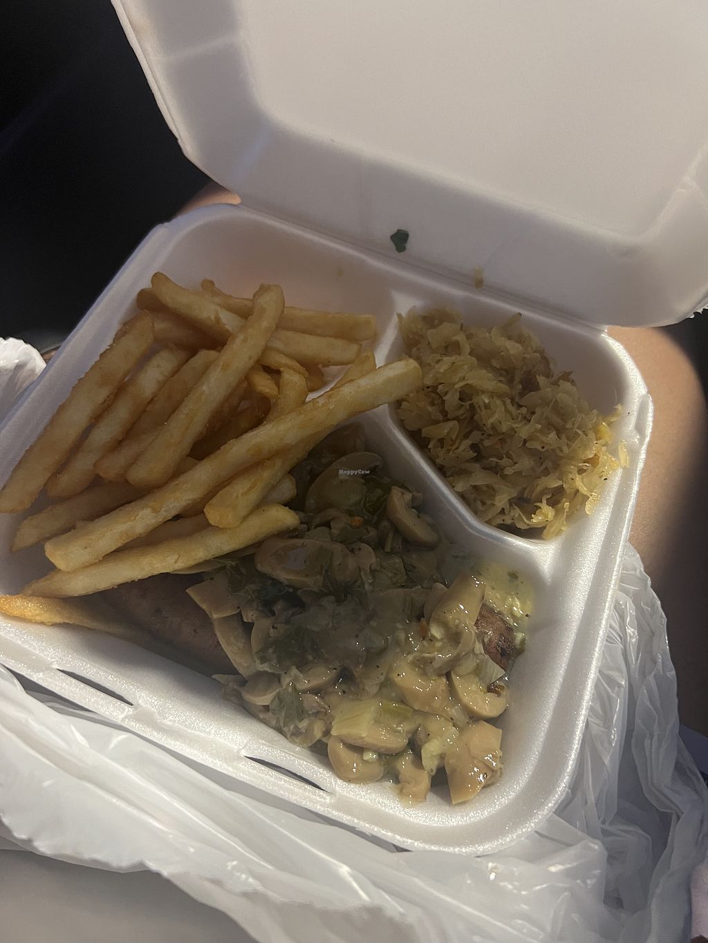Vegan curry sausage with sauerkraut and wonderful potato salad