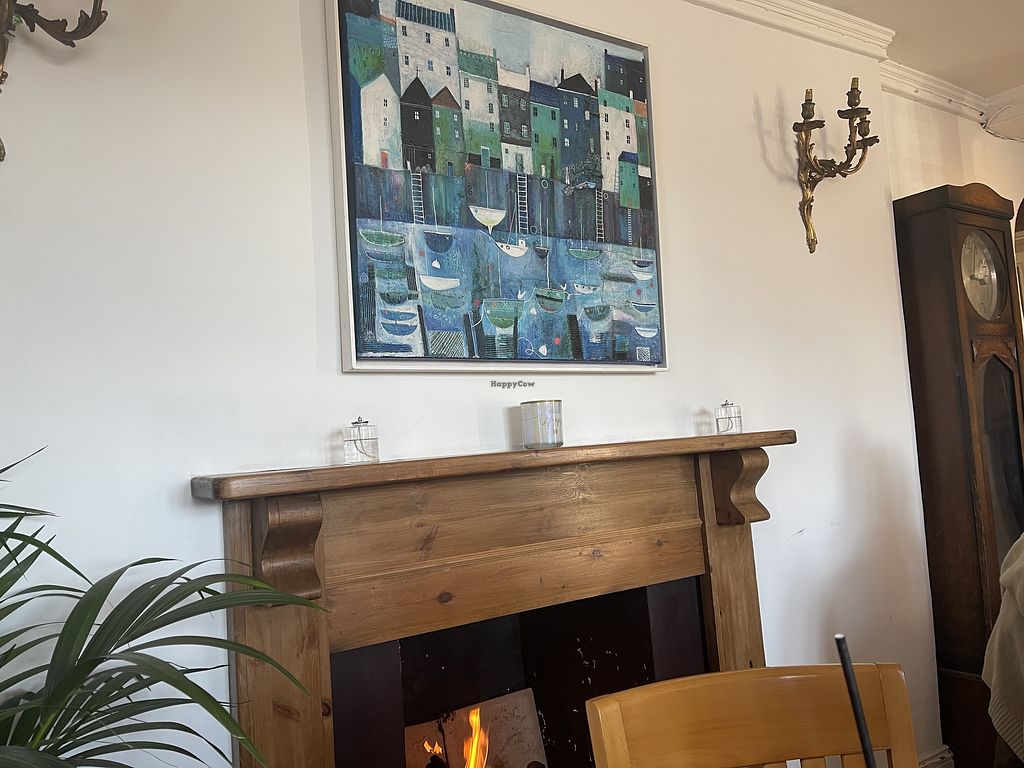 Dining room with real fireplace