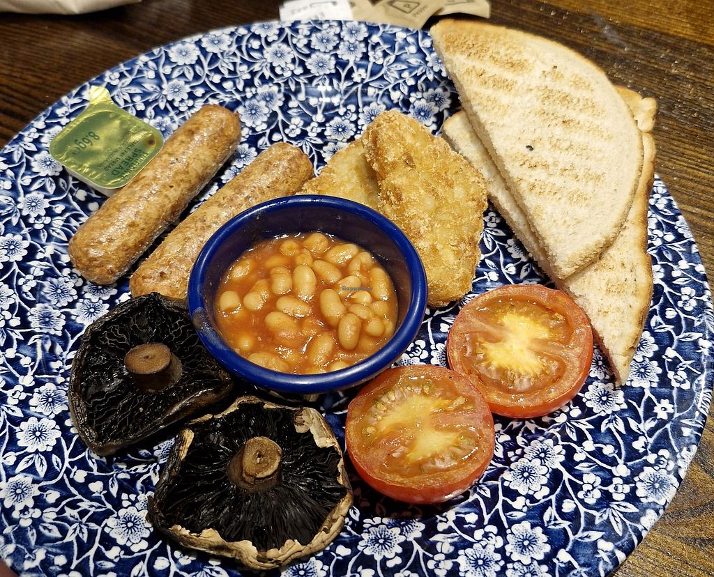 Serves meat, vegan options available. A Wetherspoon chain pub/restaurant. Ask for the separate vegan menu which offers multiple choices, such as vegan cooked breakfast, teriyaki noodles, bean chilli, hummus & roasted vegetable wrap, sweet potato, chickpea and spinach curry, among others. Baked beans reported to be vegan as of Oct 2019. Dessert may be an apple crumble (minus custard/cream) or something else. Plant milk available for drinks. Note that the food selection may vary from restaurant to restaurant. Open Mon-Thu 08:00-00:00, Fri-Sat 08:00-01:00, Sun 08:00-00:00.