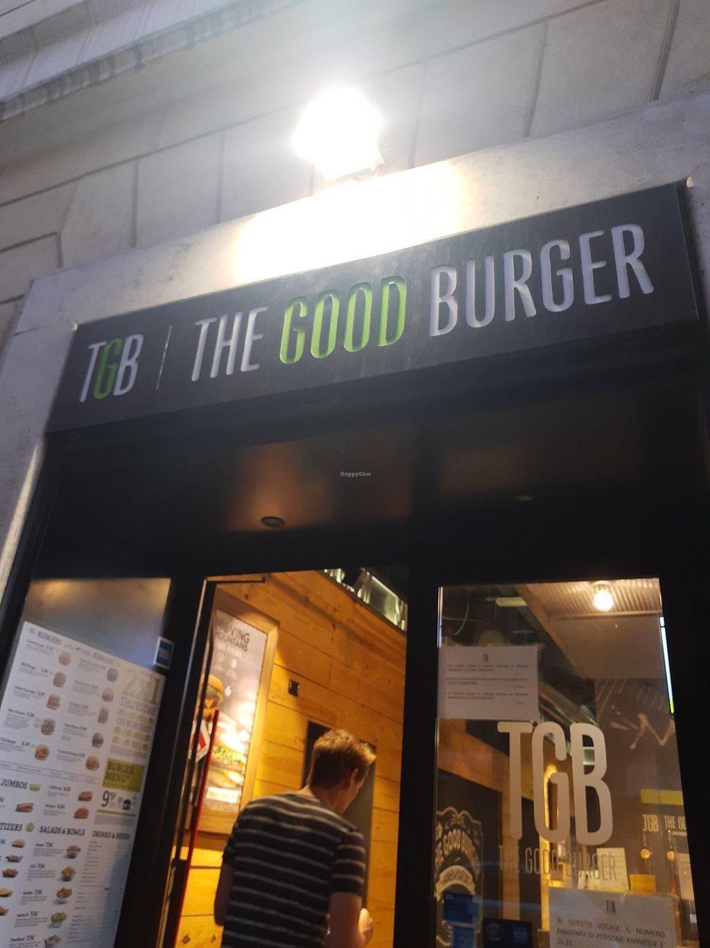 Serves meat, vegan options available. TGB offers a vegan burger using beyond meat. Reported closed April 2022.