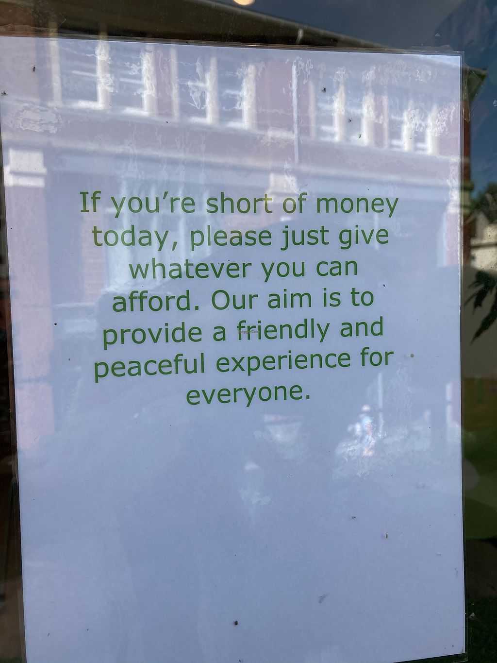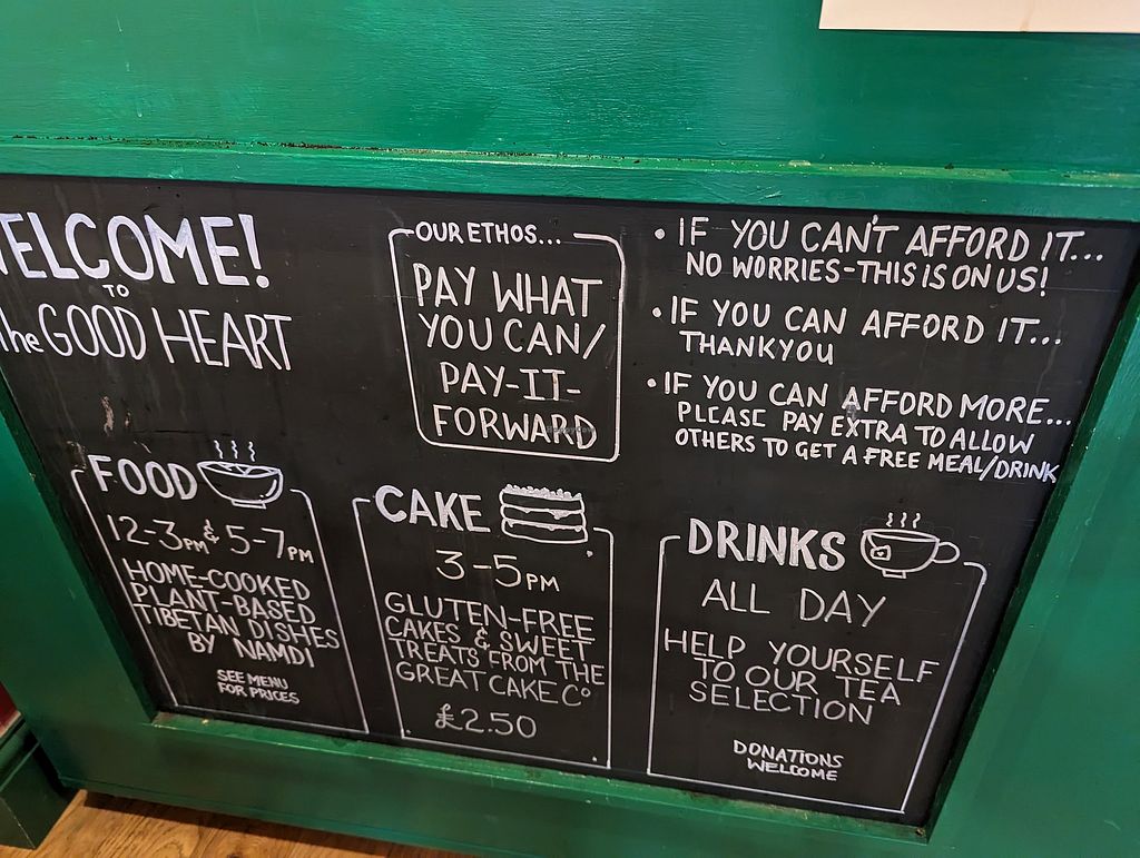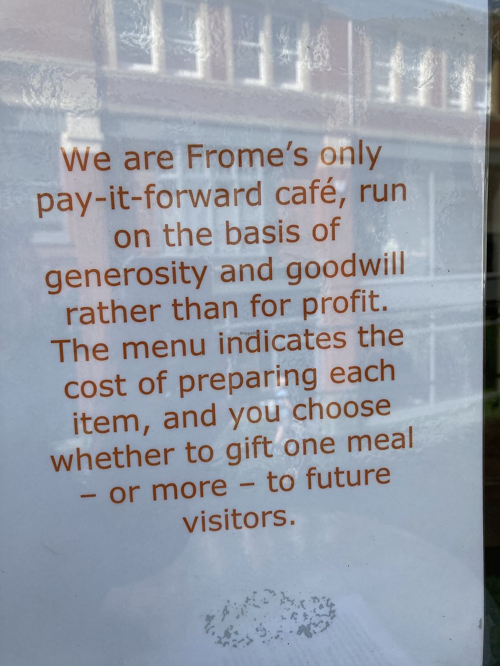 Hugely recommend!!! Loved visiting here while on a weekend trip to Frome. The food was simply delicious, filling and wholesome. The ethos of paying it forward is inspiring and I was really happy to support this restaurant, and really look forward to returning. It’s inexpensive and just awesome.