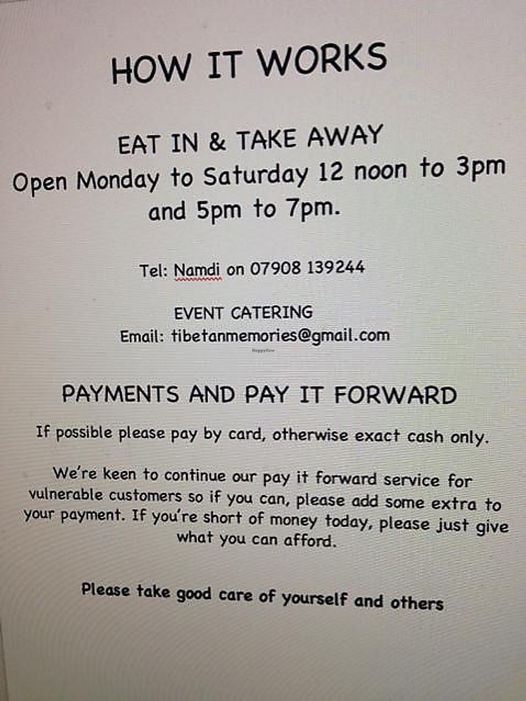 Read moreAlso could maybe add another traditional Tibetean dish as a main, other than just curry. Very nice and friendly owner, who has an interesting story. Also a nice concept that he has there for the pay it forward.