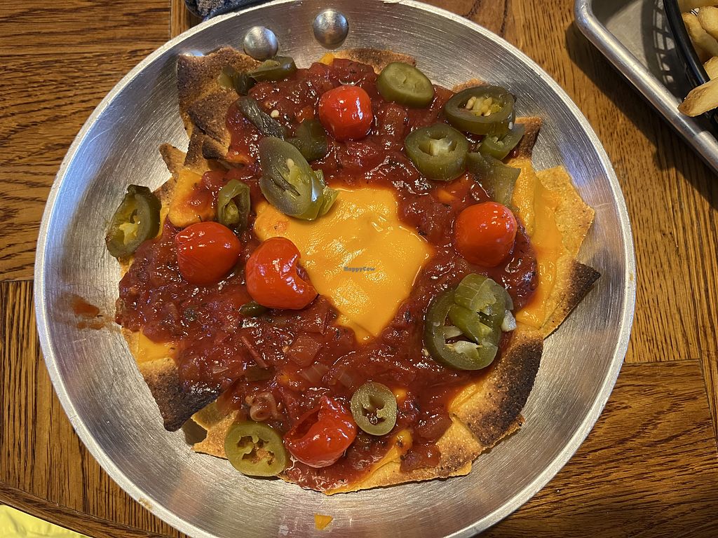 Serves meat, vegan options available. Pub with clearly labeled menu featuring a range of American cuisine. Example offerings include burgers with vegan cheese, mock chicken sandwiches, pizza with vegan cheese and nachos. Open Mon-Thu 12:00-21:00, Fri-Sat 12:00-22:00, Sun 12:00-21:00.