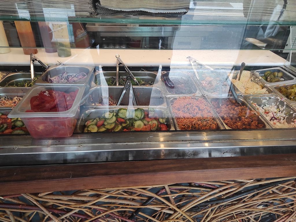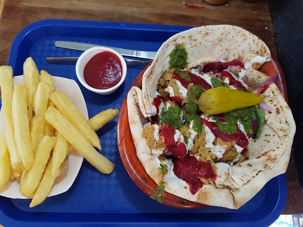 I had their falafel wrap with tabbouleh today and it was great! Also their chips are super crispy and yummy as well. Totally recommend.