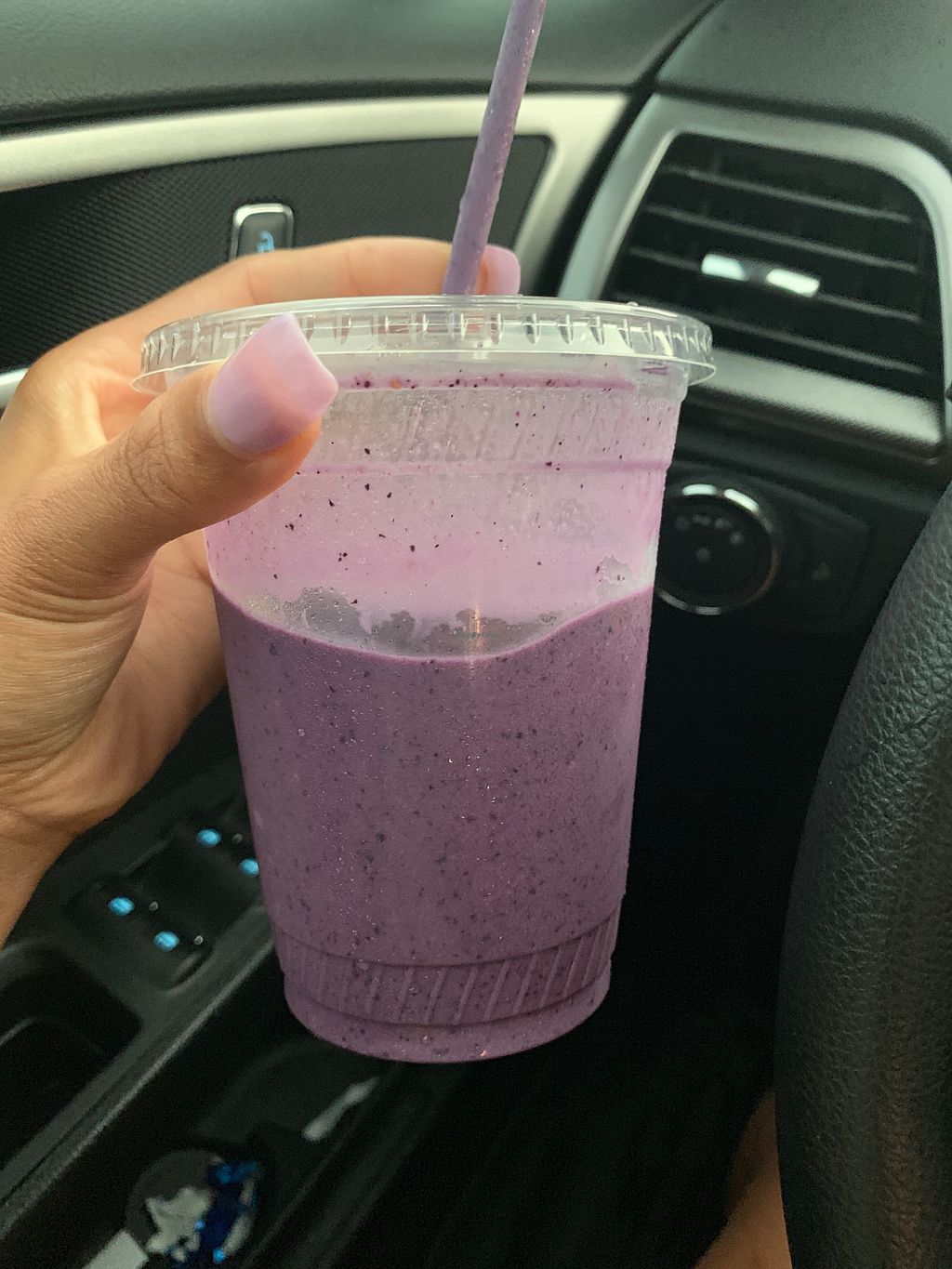 Pb&J smoothie with oat milk instead of soy milk and agavé instead of h…