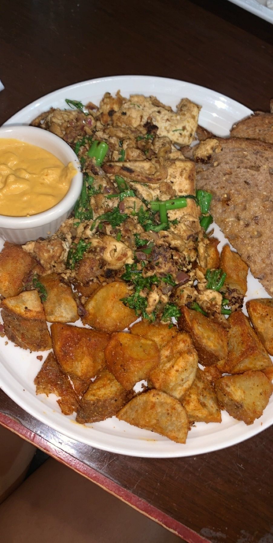 Large plate: Eggplant with tahini/cashew paste on a bed of lentils and…